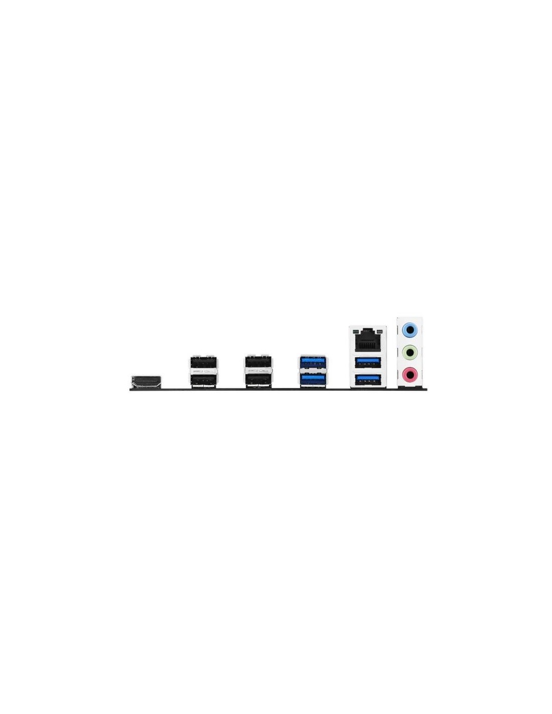 | Puertos E/S, Conectores | Conectores Internos E/S 1 x cabezal de ventilador de CPU de 4 pines 2 x cabezales de ventilador de chasis de 4 pines - Relacionado con el poder 1 x conector de alimentación principal de 24 pines 1 x conector de alimentación de 8 pines +12 V - Relacionado con el almacenamiento 2 x ranuras M.2 (clave M) 4 x puertos SATA de 6 Gb/s - USB 1 x cabezal USB de 5 Gbps que admite 2 puertos USB de 5 Gbps adicionales 2 x cabezales USB 2.0 que admiten 4 puertos USB 2.0 adicionales - Varios 3 x cabezal direccionables Gen 2 1 x cabezal CMOS transparente 1 x cabezal de puerto COM 1 x cabezal de audio del panel frontal (F_AUDIO) 1 x cabezal de salida S/PDIF 1 x cabezal de altavoz 1 x cabezal SPI TPM (14-1 pines) 1 x cabezal del panel del sistema de 10-1 pines Panel E/S Trasero - 4 x puertos USB 2.0 (4 x Tipo-A) - 1 x puerto HDMITM - 1 x puerto Ethernet Realtek de 2,5 Gb - 3 x conectores de audio |