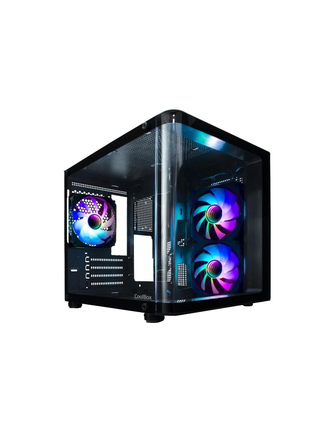 Espectacular caja gaming con cristal templado curvo. Compatible con placas base micro ATX y mini ITX, con 3 ventiladores ARGB Infinity-12 incluidos (1 trasero + 2 laterales) y compatible con gráficas de hasta 340 mm de longitud, para montar un equipo a tope de prestaciones.