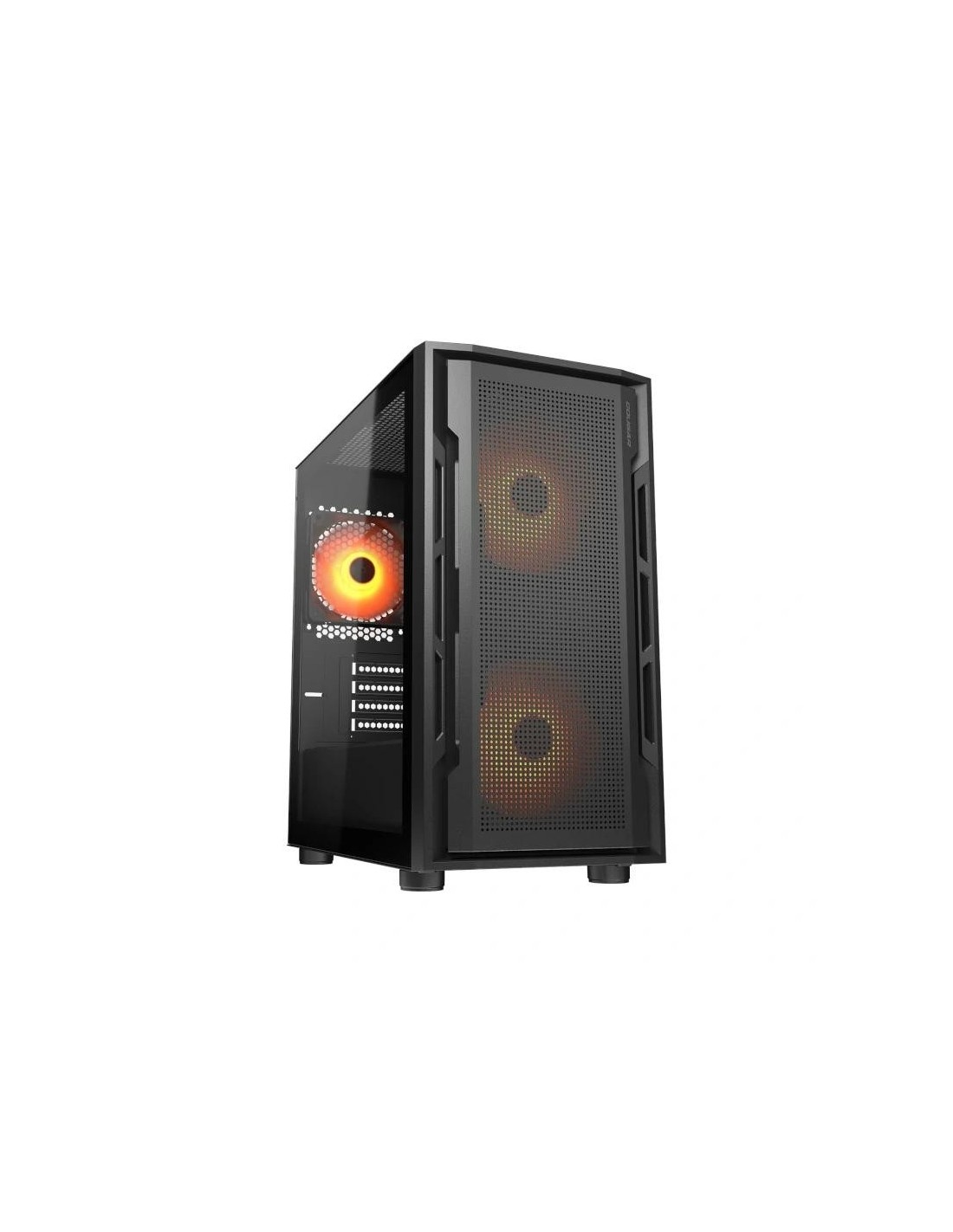 | Características | - Factor de forma de la caja: Mini Torre - Tipo de placa base: Mini ITX / Micro ATX * E-ATX de hasta 277 mm de ancho. - Panel I/O: 2 x USB 3.0 1 x USB 2.0 1 x Mic 1 x Audio RGB botón - Bahía de unidad de 3,5": 2 - Bahía de unidad de 2,5": 2+2 (converted from 3.5" drive bays) - Expansion Slots: 4 - Soporte del ventilador de refrigeración: Frontal: 3 x 120 mm / 2 x 140 mm Superior: 2 x 120 mm / 2 x 120 mm Trasero: 1 x 120 mm - Ventiladores preinstalados: Frontal: 2 x ventiladores 140mm ARGB Trasero: 1 x ventilador 120 mm ARGB Velocidad: 140mm ARGB fan: 1000 ± 10% RPM 120mm ARGB fan: 1200 ± 10% RPM Conector: 5V 3 Pin (ARGB) / 3 Pin (Fan) - Número máximo de ventiladores: 6 - Soporte de refrigeración por agua: Frontal: 280 mm / 240 mm / 140 mm / 120 mm Superior: 240 mm/120 mm (al instalar el radiador superior, la limitación de altura de RAM es de 45 mm) Trasero: 120mm - Concentrador de sincronización RGB con M/B - Máx. Longitud de la tarjeta gráfica: 340 mm - Máx. Altura del enfriador de CPU: 160 mm - Máx. Longitud de la fuente de alimentación: 160 mm - Dimensiones: 340 x 160 x 160 mm |
