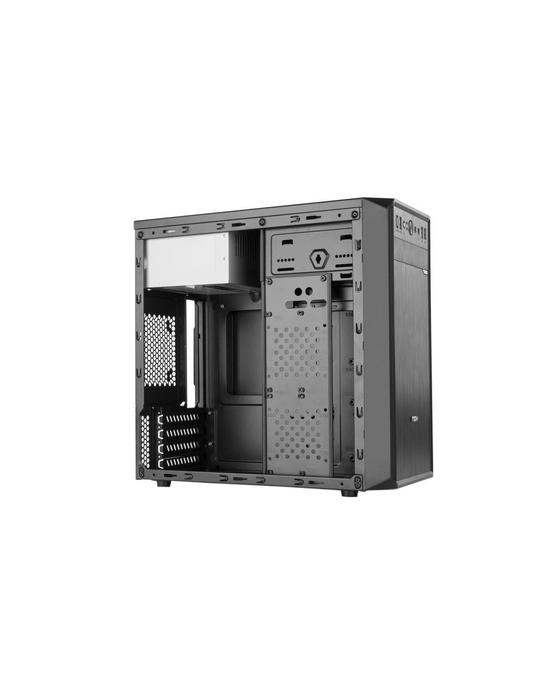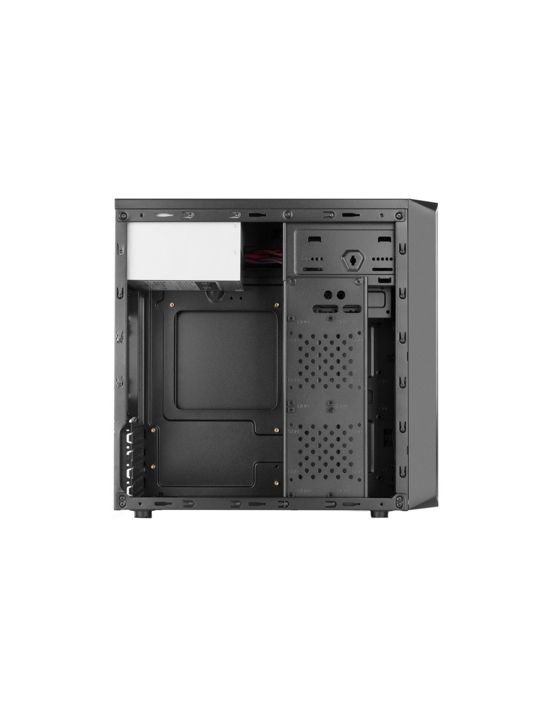 | Diseño | - Factor de forma: Midi-Tower - Tipo: PC - Materiales: De plástico, SPCC - Número de puertos 5.25": 1 - Número de puertos 3.5": 3 - Placas base soportadas: Micro-ATX (Excepto Micro-ATX 24.0 x 24.0 cm), Mini-ITX - Color del producto: Negro - Ventana lateral: No - Número de bahías 2.5'': 4 - Adecuado para: Hogar / Oficina - Número de ranuras de expansión: 7 - Altura máxima de la CPU más fresco: 14,7 cm - Máxima longitud de la tarjeta de gráficos: 31,5 cm |
