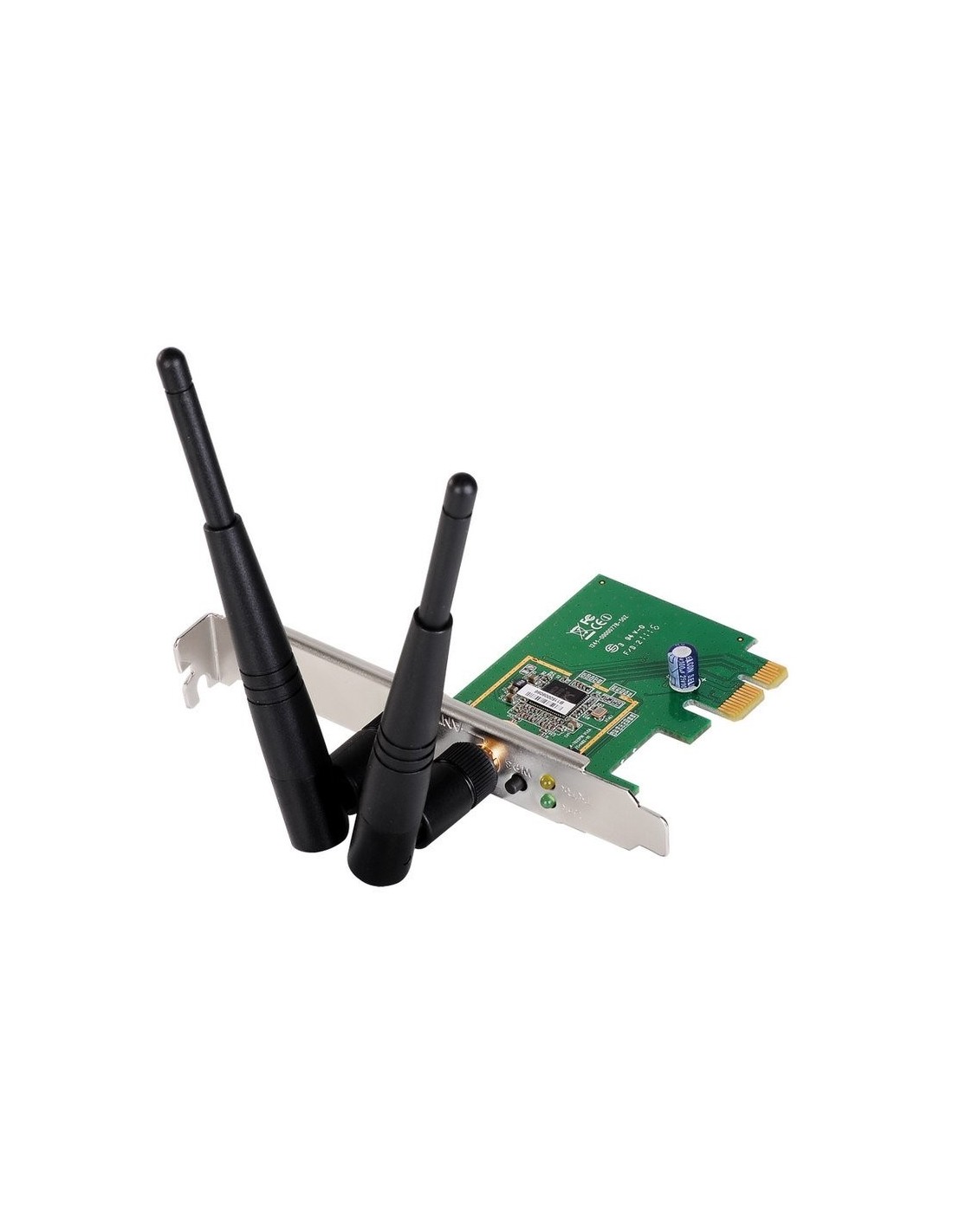 | Especificaciones | Interfaces - 1 x interfaz PCI Express - 1 x LED de enlace - 1 x LED Tx / Rx - 1 x botón de hardware WPS - 2 x conector RP-SMA - 2 antenas desmontables 3dBi de alta ganancia Normas - IEEE 802.11b - IEEE 802.11g - IEEE 802.11n Tasas de transferencia de datos - 11b: 1/2 / 5,5 / 11 Mbps - 11g: 6/9/12/24/36/48 / 54Mbps - 11n (20MHz): MCS0-15 (hasta 144Mbps) - 11n (40MHz): MCS0-15 (hasta 300Mbps) Banda de frecuencia - 2.4000 a 2.4835 GHz - (Banda médica científica industrial) Potencia de salida - 11n: 12dBm ± 1.5dBm - 11g: 12dBm ± 1.5dBm - 11b: 16dBm ± 1.5dBm Seguridad inalámbrica - WEP, WPA, WPA2 e IEEE 802.1x de 64/128 bits - Configuración de WPS de hardware y software Instalación - Asistente de configuración EZmax en varios idiomas Requisitos del sistema - Windows / XP / Vista / 7/8 Dimensiones - 22 x 121 x 88 mm (sin antena) Certificaciones - CE, FCC |