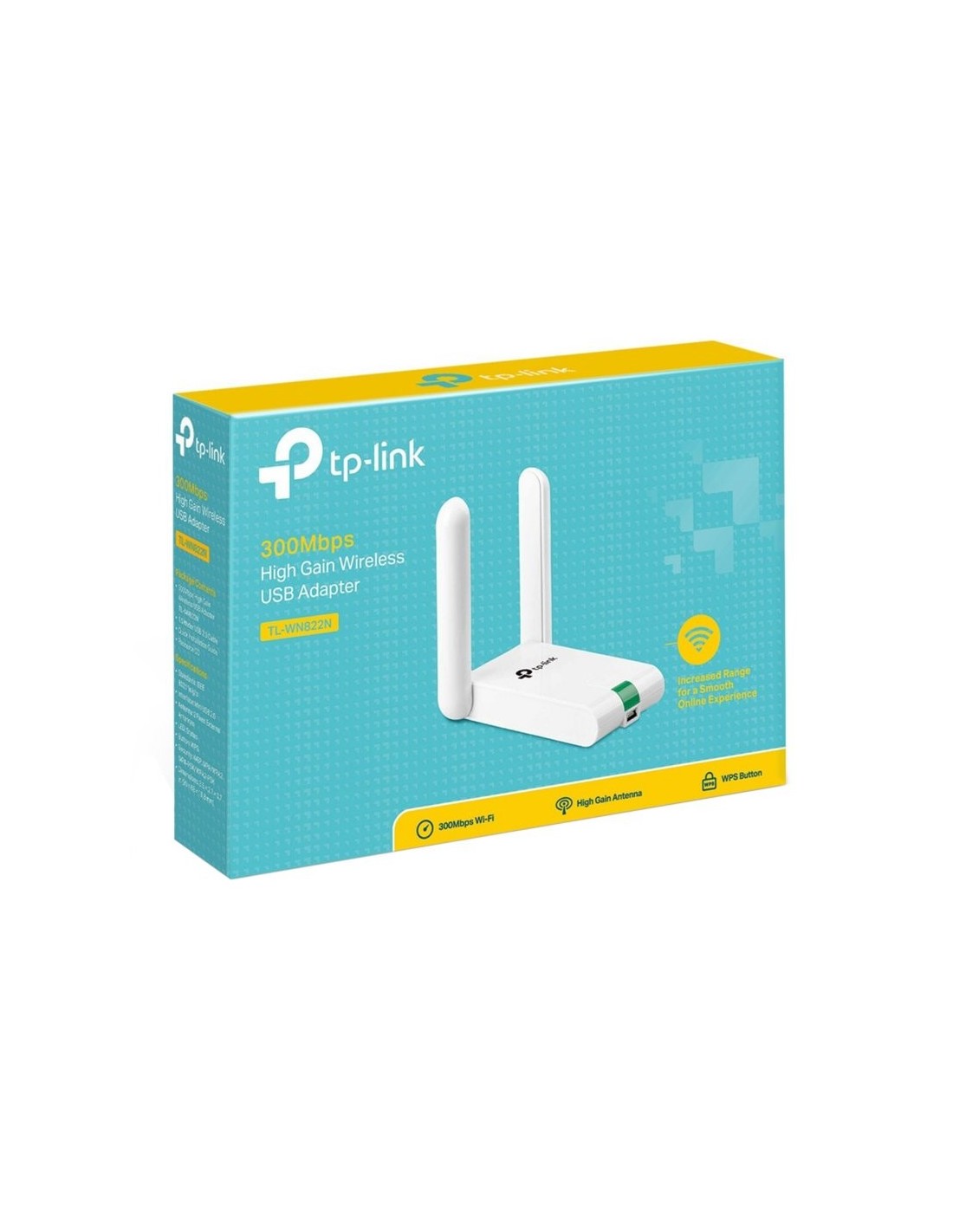 | Otras características | - Requisitos del sistema: Windows 8.1 32/64bit Windows 8 32/64bit Windows 7(32/64bits) Windows XP(32/64bits) Mac OS X 10.7~10.10 Linux - Certificaciones: CE, FCC, RoHS Contenido - Adaptador inalámbrico TL-WN822N - CD de utilidades - Cable USB - Guía rápida de instalación |