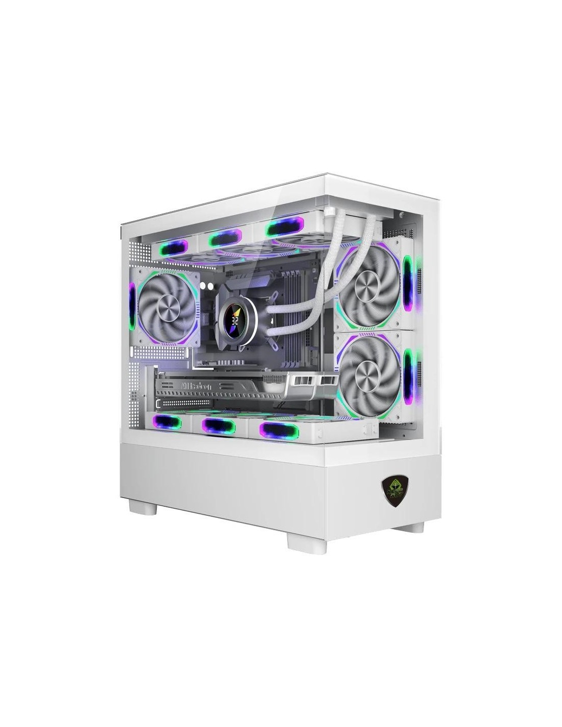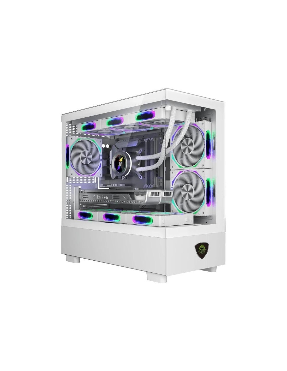 | Caracteristicas | - Longitud de la tarjeta gráfica: 420 mm máx. - Altura del disipador de la CPU: 165 mm máx - Materiales: Panel derecho: Acero Panel izquierdoy frontal: Cristal templado de 3 mm Chásis: Acero SPCC 0,6 mm - Ranuras de expansión: 4 - Color Blanco Dimensiones y peso - 435 x 215 x 435 mm - 5,2 Kg Contenido - Caja PC - Accesorios de montaje - Guía de usuario |