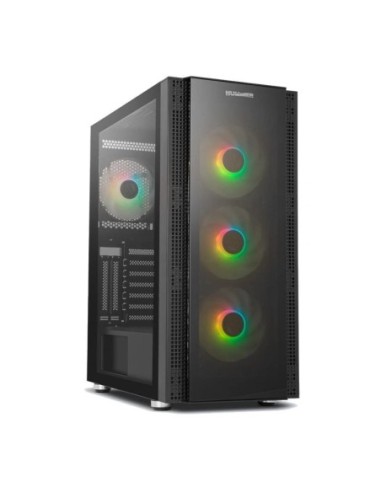 | Otras Características | - Material: Chasis de acero SPCC 0.6 mm (interior negro) Panel lateral y frontal en cristal templado - Slots expansión: 7 - Color: Negro - Fuente de alimentación: Estándar ATX compatible (no incluida) Espacio - Cooler CPU: 163 mm (altura máxima) - VGA: 345 mm (longitud máxima) - PSU: 210 mm máximo - Cableado: 25 mm Dimensiones y peso - 215 x 482 x 410 mm - 6,2 Kg |