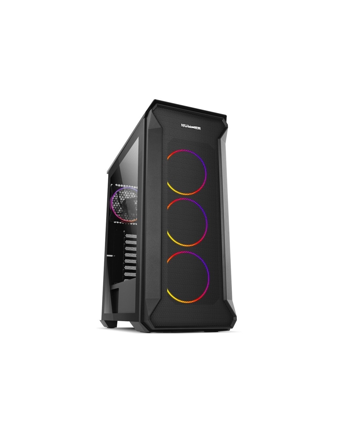 Hummer Quantum te ofrece amplias posibilidades para una configuración de alto rendimiento. Es compatible con placas base ATX, Micro ATX e ITX y dispone de espacio suficiente para ensamblar dos HDD de 3,5” y siete SSD de 2,5”.