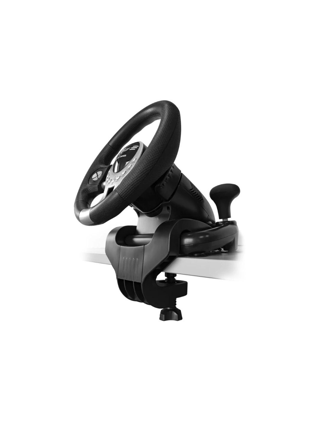 | Características | - Botón de inicio para acceder directamente a la configuración de su consola - Cruce octodireccional analógica - Lever de velocidad pro y paletas secuenciales para un control rápido de las relaciones - Motor de doble vibración para sensaciones cada vez más reales - Pedal progresivo para aceleración y frenado ultra precisos - Recubrimiento Grip Control para un agarre de carrera - Volante con rango de giro de 180° - Plataforma(s) compatibles: EL PS3 Interruptor de nintendo Ordenador personal Ps4 XBOX Serie S XBOX Serie X XBOX Uno - Conexión: Cable USB Contenido - Pedal - Guía de instalación rápida - Sistema de sujeción - Volante |