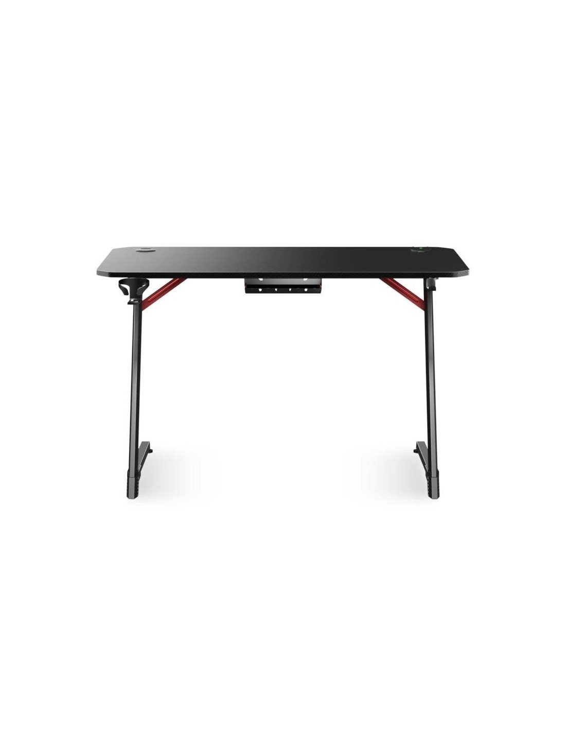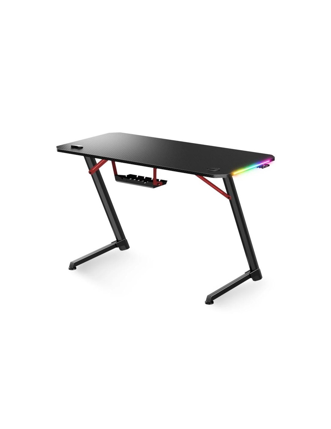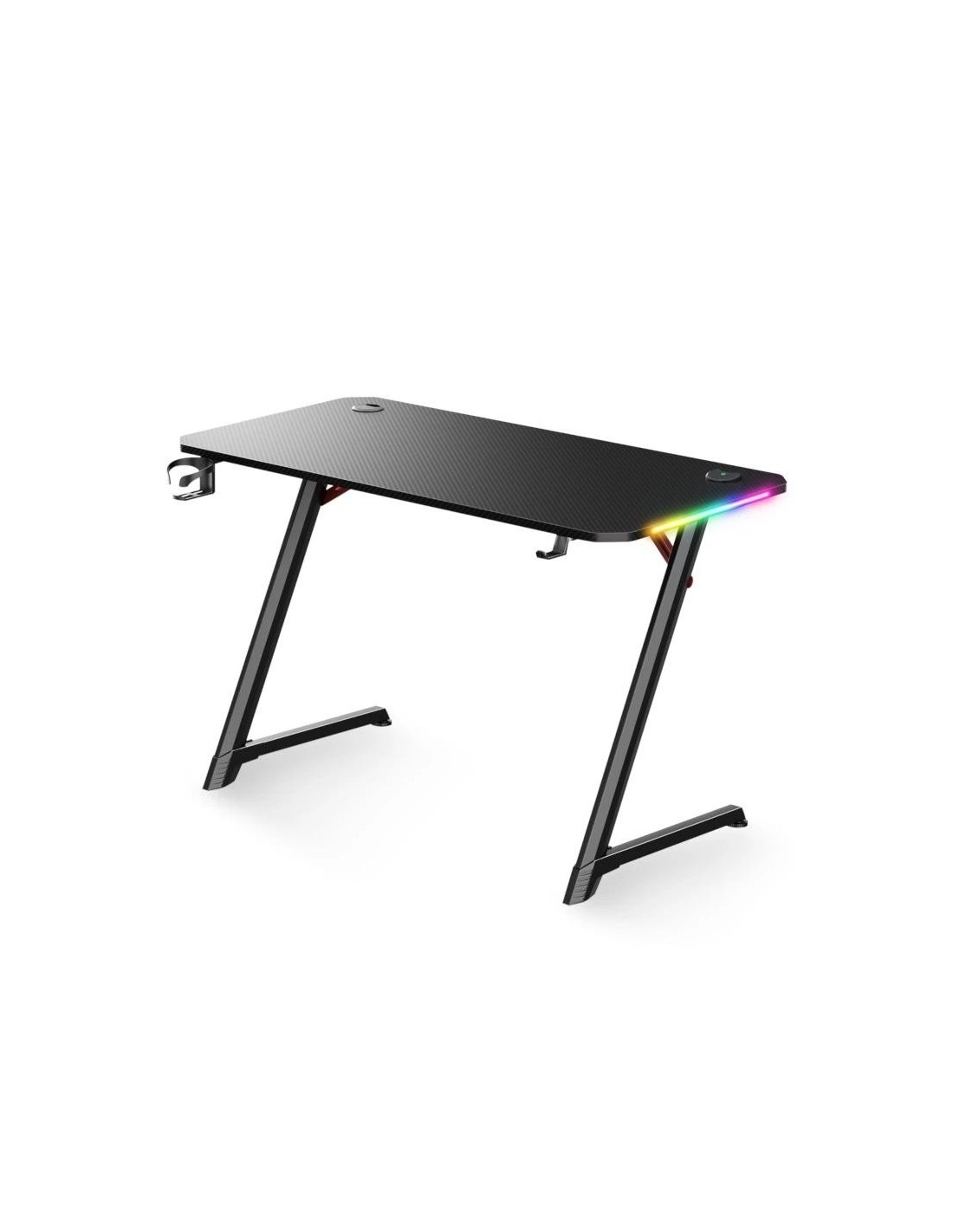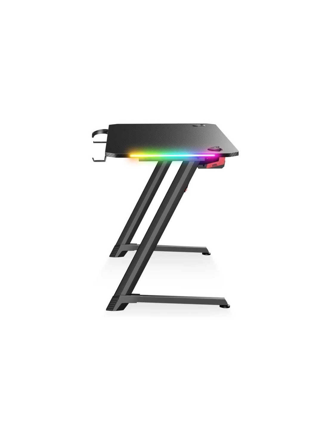 | Características | - Marco de metal - Patas ajustables para ajustar la polea - Patas de diseño futurista - Patas metálicas de acero - Tapa de madera MDF - RGB Design: 8 modos de iluminación Contenido - 1 x apoyo del casco - 1 x Cesta cubierta de cables - 1 x Pasacables redondos - 1 x Portador de tazas |