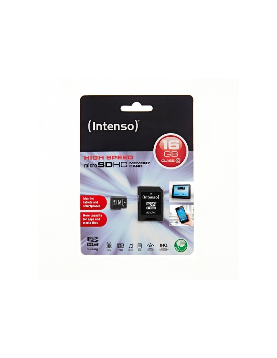 Las tarjetas de memoria de intensos son la solución perfecta para aquellos que quieren el rendimiento de tarjeta de memoria sea mayor. Leer velocidades de hasta 20Mbps y velocidades de escritura de 12 Mbps hacen que esta tarjeta sea ideal para el almacenamiento de fotos, vídeo y música etc.