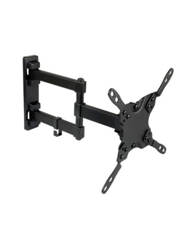 | Caracteristicas | - Pantallas soportadas: 13"- 42" - Compatible con VESA: 75x75, 100x100, 200x100 y 200x200 - Peso máximo soportado de pantalla: 20 kg - Ángulo de inclinación: +5°/-12° - Ángulo de giro: +90°/-90° - Ángulo de nivelación: +3°/-3° - Distancia de pared: 60-364 mm - Color: Negro - Peso neto: 1,61 kg. Peso bruto: 1,81 kg - Medidas del embalaje: 212x50x220 mm Contenido - 1 x Soporte - 1 x Kit montaje (incluye herramientas) - 1 x Manual de instalación |