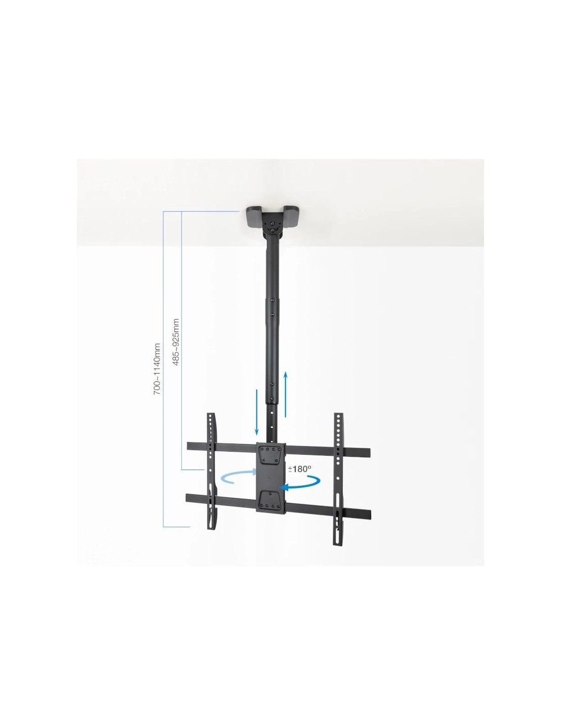 | Características | - Pantallas soportadas: 43"-86" - Compatible con VESA: Máximo 600 x 400. Mínimo 200 x 200 - Peso máximo soportado de pantalla: 60 kg - Ángulo de inclinación: +0°/-25° - Ángulo de giro: +180°/-180° - Ángulo de nivelación: +3°/-3° - Distancia de techo: 485-925 mm - Apto para techos inclinados: +60°/-60° - Sistema de organización de cables - Compatible con pantallas curvas - Color: Negro - Material: fabricado en acero de alta calidad - Peso: 5,35 kg. - Medidas del embalaje: 437 x 255 x 168 mm Contenido del Paquete - 1 x Soporte - 1 x Kit montaje (incluye herramientas) - 1 x Manual de instalación |