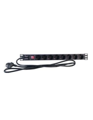 Regleta de alimentación PDU para ancho de perfil estándar de 19", con 8 tomas schuko e interruptor.