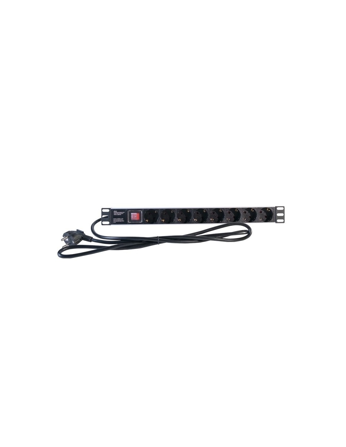 | Características | - Potencia: 250V / 16A; 3.500W. - Longitud del cable: 2m. - Manguera: 3 hilos x 1.5mm ø - Interruptor de alimentación. - Enracable en armarios de 19". - Regleta de gran consistencia, con 8 schukos. - Acabado en color negro. - Otros: CE; ROHS |