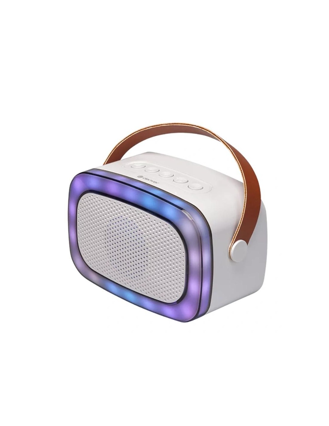 | Especificaciones | - Altavoz Bluetooth con luz LED y micrófono incluido - Ranura para tarjeta MicroSD y entrada USB para reproducción de MP3 - Micrófono incluido para función de karaoke - Entrada auxiliar - Salida de potencia máxima 100 W (10 W RMS) - Luz LED alrededor del altavoz - Batería de litio incorporada (1200 mAh) |