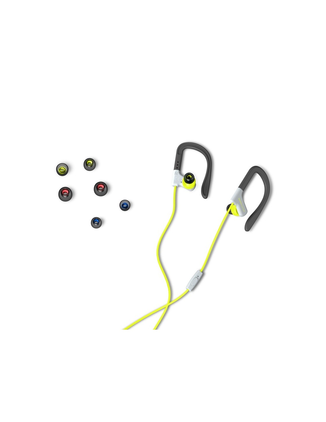 | Características destacadas | - Auriculares deportivos con diseño intrauditivo. - Resistencia al sudor y salpicaduras para practicar deporte con comodidad. - Cable de 1,2 m de longitud con conector miniJack. - Botón para controlar la reproducción integrado. - Micrófono incorporado para responder llamadas. - Almohadillas intercambiables en tres tamaños diferentes. |