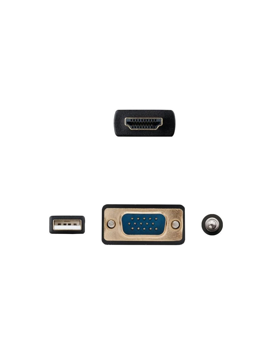 | Características | - Cable conversor HDMI a SVGA con conector HDMI macho en un extremo y conector D-sub HDB15 macho con Jack 3.5 macho y USB-A macho - Permite al usuario conectar una pantalla VGA a un dispositivo equipado con salida HDMI - Soporta salida de señal analógica hasta 1920x1200@60Hz y 8-bit DAC - Soporta HDCP 1.4 - Señal de audio a través de Jack 3.5 - Incorpora conexión USB-A para alimentar la salida VGA, en caso de ser necesario - No requiere software ni controladores, una solución totalmente plug and play - Longitud: 1.8 m - Color: Negro - NormativaS: RoHS - Test de Funcionamiento: 100% testado |