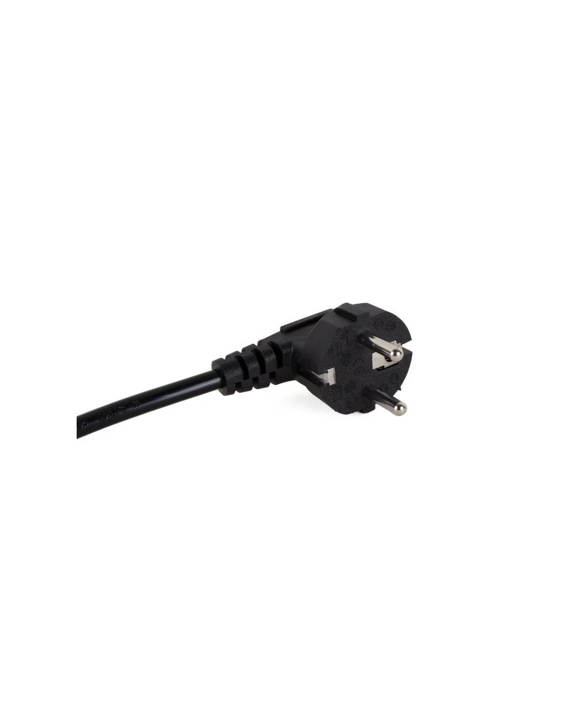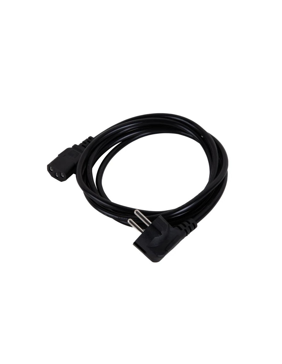 | Características | - Conectores: CEE 7/7 macho Schuko / IEC C13 hembra - Conductores de cobre 18 AWG - Número de conductores: 3 - Amperaje máximo: 3,5 A - Voltaje máximo: 250V AC - Mecanismo de protección contra tirones integrado - Cable armonizado H05VV-F flexible y duradero - Núcleo trenzado con aislamiento y funda de PVC - Longitud: 200 cm - Normativa: RoHS - Test de funcionamiento: 100% testado - Color: negro |