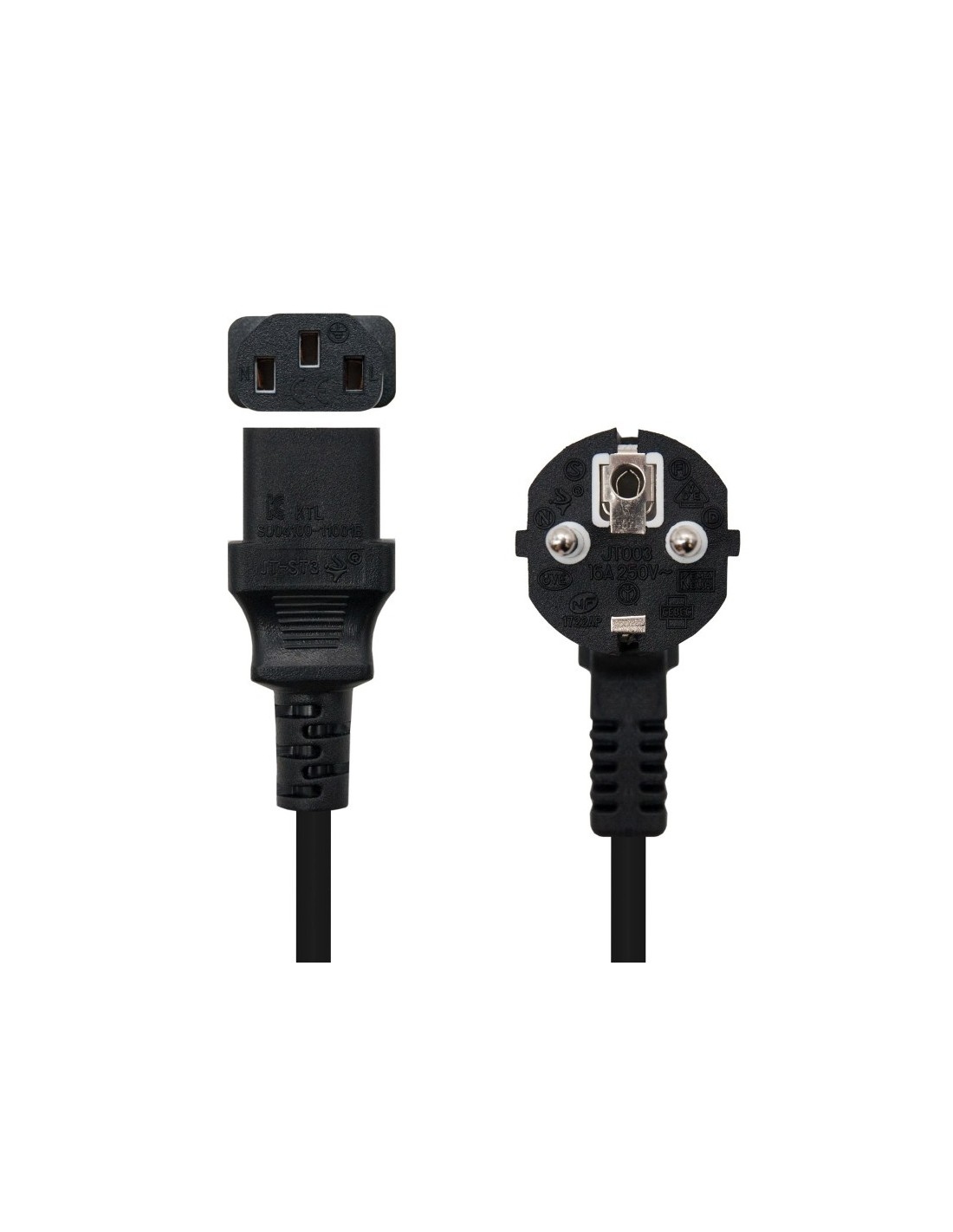| Características | - Conector CEE7 macho en un extremo y C13 hembra en el otro. - Test de Funcionamiento: 100% testado - Longitud: 3.0 metros - NormativaS: RoHS - Color: Negro Contenido - 1 x Cable alim. cpu, cee7/m-c13/h, 3.0 m |
