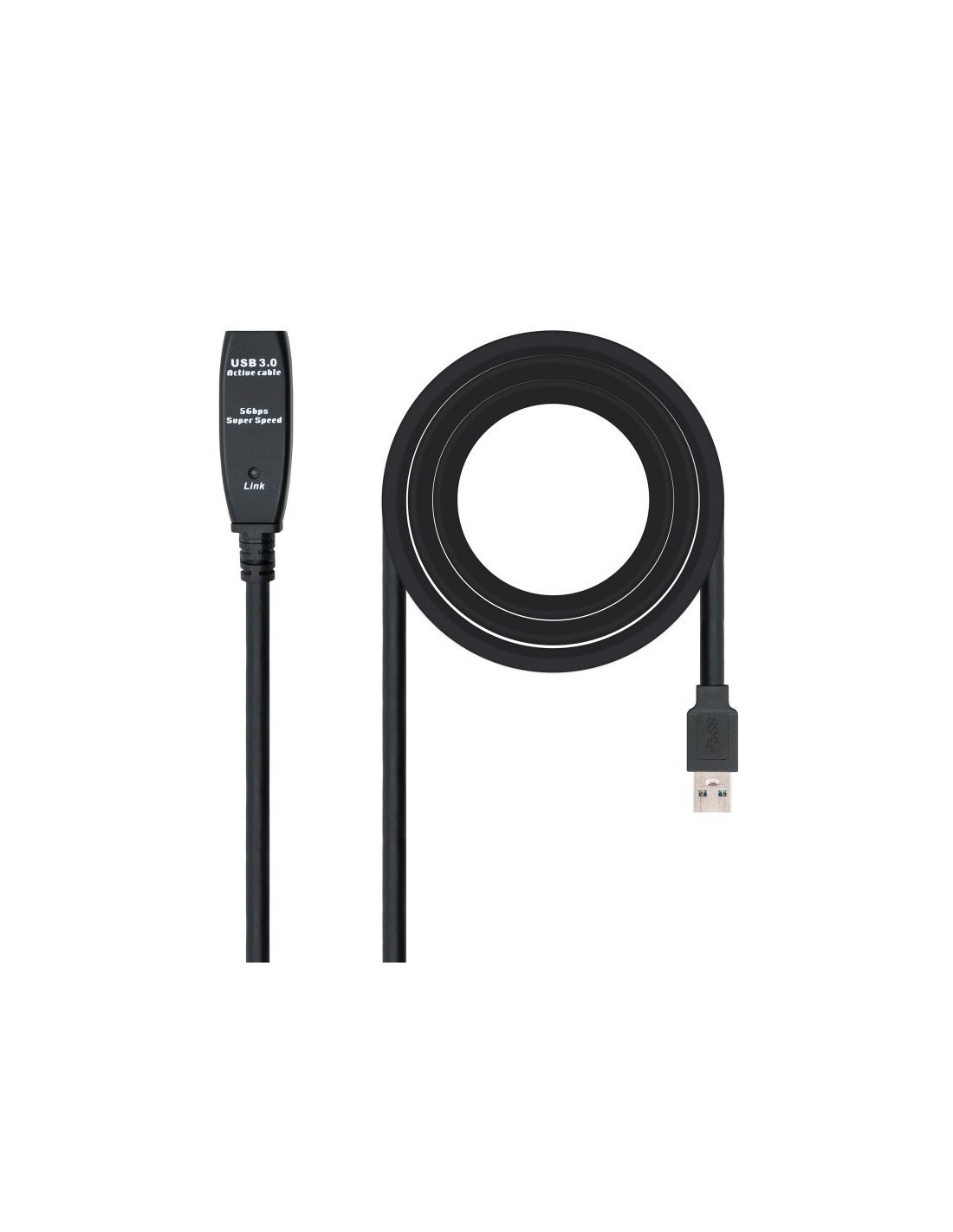 | Caracteristicas | - Cable prolongador USB 3.0 con conector tipo A macho en un extremo y tipo A hembra en el otro. - Lleva amplificador para amplificar la señal de USB - Máxima velocidad de transferencia: 5Gbps - Es una solución ideal para necesidades de cable USB con longitud de más de 5 metros hasta un máximo de 20 metros (uniendo 4 cables prolongadores con alimentador) - No requiere software ni controladores, una solución totalmente plug and play - Compatible con USB 2.0 - Longitud: 5 m - Color: negro - Normativas: RoHS - Test de Funcionamiento: 100% testado Contenido - 1 x Cable USB 3.0 prolongador con amplificador, tipo A/M-A/H, 5 m |
