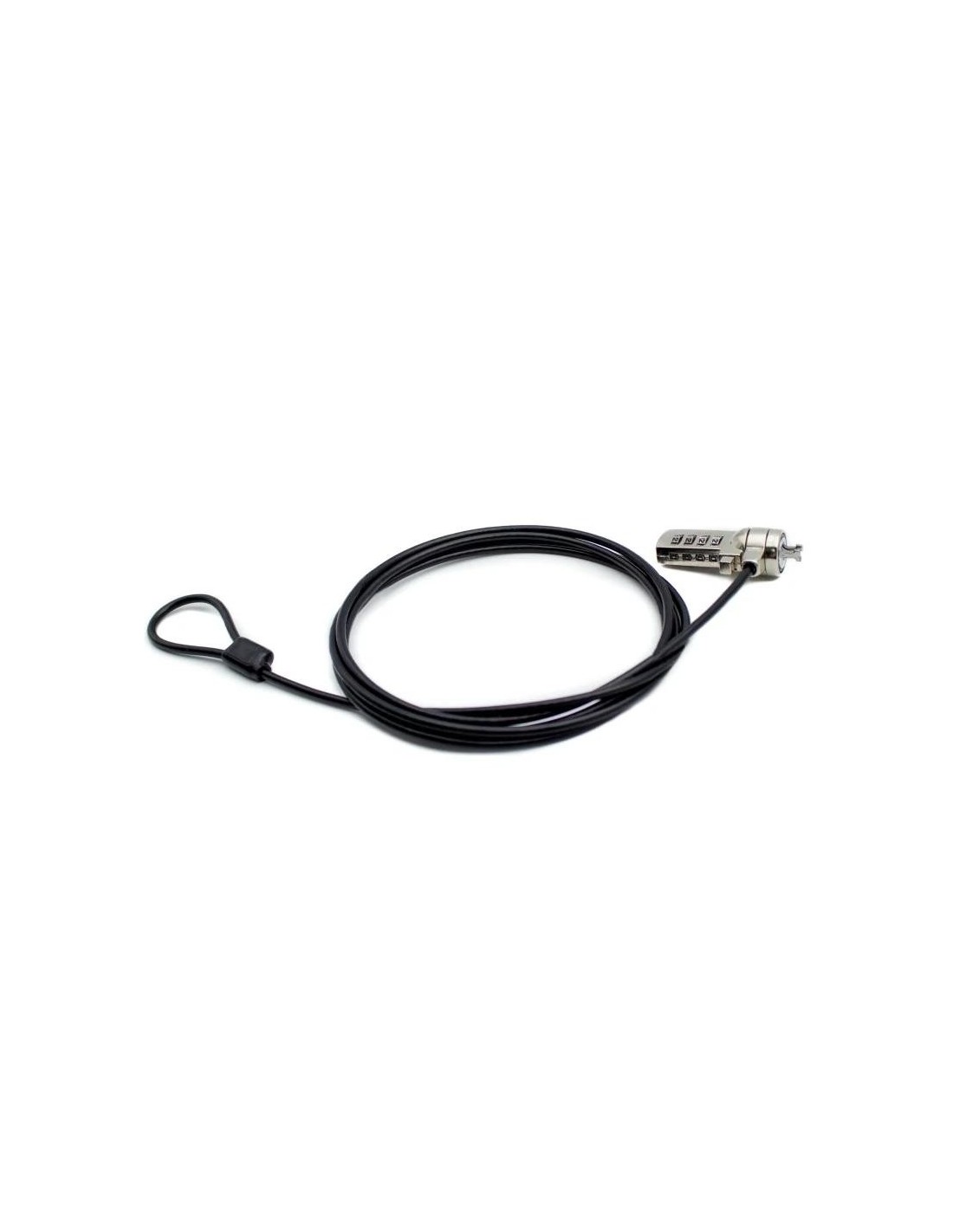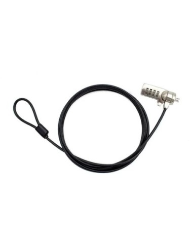 | Características | - Mejores usos: Portátil, PC - Tipo de candado: Cerradura con combinación - Material: Acero - Color del producto: Negro Dimensiones y peso - Longitud de cable: 1,8 m - Diámetro de cable: 4 mm |