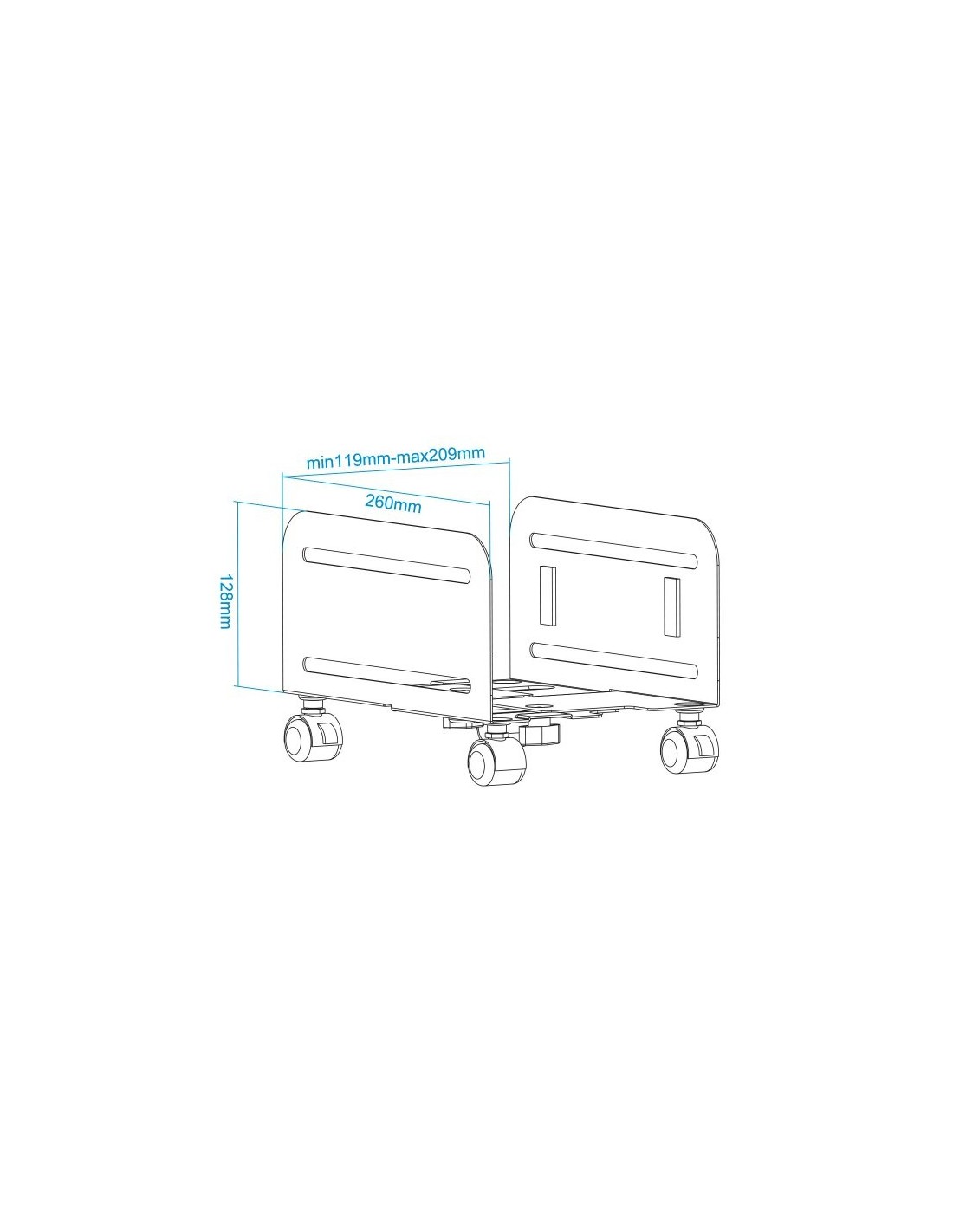 | Caracteristicas | Especificaciones - Soporte metálico para CPU de suelo con ruedas - Soporta torres de entre 119-209 mm de ancho - Carga Máxima: 10 kg - Medidas del soporte (sin ruedas): 119-209 x 260 x 128 mm - Medidas del soporte (con ruedas): 119 – 209 x 260 x 174 mm - Dispone de 4 ruedas giratorias (2 de ellas con freno de bloqueo) - Color: Negro - Normativa ROHS Contenido - 1 x Soporte - 1 x Kit montaje (Incluye herramienta) - 1 x Manual de instalación |