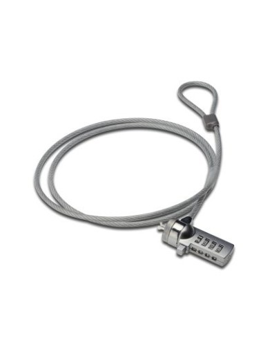 El Candado para Portátil EW1241 protege su ordenador portátil y su escritorio contra robos. Funciona como un candado para bicicletas. Simplemente enrolle el cable de acero de 1,5 metros alrededor de un objeto inamovible, como una pared, un radiador o un escritorio; y para terminar, introduzca una combinación de números para activar el bloqueo.