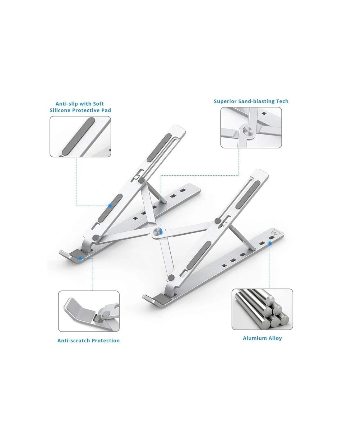 Soporte para portátiles con 6 niveles ajustables en altura que protege sus vértebras cervicales de malas posturas.