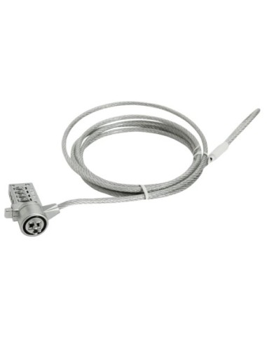 | Caracteristicas | - Cable de bloqueo para portátil con cerradura de combinación de 4 dígitos - Fuerte cable de acero de 4 mm y bloqueo de metal grueso - Configuración rápida y sencilla de código personal de 4 dígitos - Material: Cable de acero con cubierta de PVC - Peso: 120 g - Longitud: 1800 - Diámetro: 4 mm |