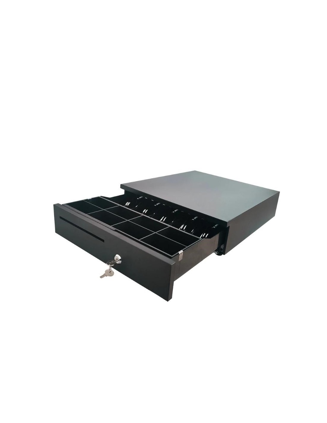 | Características | - Tipo gaveta: Fija - Comp. billetes: 5 - Comp. monedas: 5/6/8 Ajustables y extraíbles - Voltaje: 12V - Interface: RJ12 (Microswitch) - Cerradura: 3 posiciones (apertura electrónica, apertura manual y bloqueo) - Longitud cable: 1.5 m - Ranura documentos Dimensiones y peso - 405 x 420 x 100 mm - 4,35 Kg |