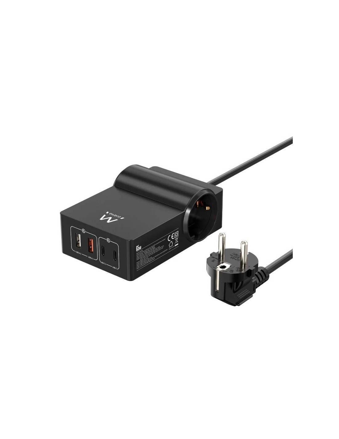 | Características | - Con extensor de 2 salidas y 2 puertos Tipo-C y USB - Alimentación para 6 dispositivos - Cargador de escritorio compacto compatible con USB-C, USB-A y PPS y 2 tomas Schuko - Carga máxima de alta velocidad de 65 W - Compatibilidad universal - Potencia: máx. 3840W, 16A - Entrada: CA 100-240 V 50/60 Hz 16 A máx. - Salidas: 2x Tipo F hembra 16A ángulo de 45° - Salida USB-C1/2: 5V/3A, 9V/3A, 12V/3A, 15V3A, 20V/3,25A, 65W máx. PPS: 3,3-20 V/3 A. - Salida USB-A1: 5V/4.5A, 5V/3A, 9V/2.6A, 12V/2A - Salida USB-A2: 5V/2.4A - USB-C1 + USB-C2 + USB-A1 + USB-A2 Salida: 45W+15W+5W - Conector enchufable: Tipo CEE 7/7 16A - Protección infantil: - Protección: Protección contra sobrecorriente y sobretensión. - Cable: H05VV-F 3G 1,0 mm2 - Longitud del cable: 1,5 metros - Color: Negro - Material: plástico + ABS- : Dimensiones y peso - 75 x 46 x 116 mm - 453 gr |