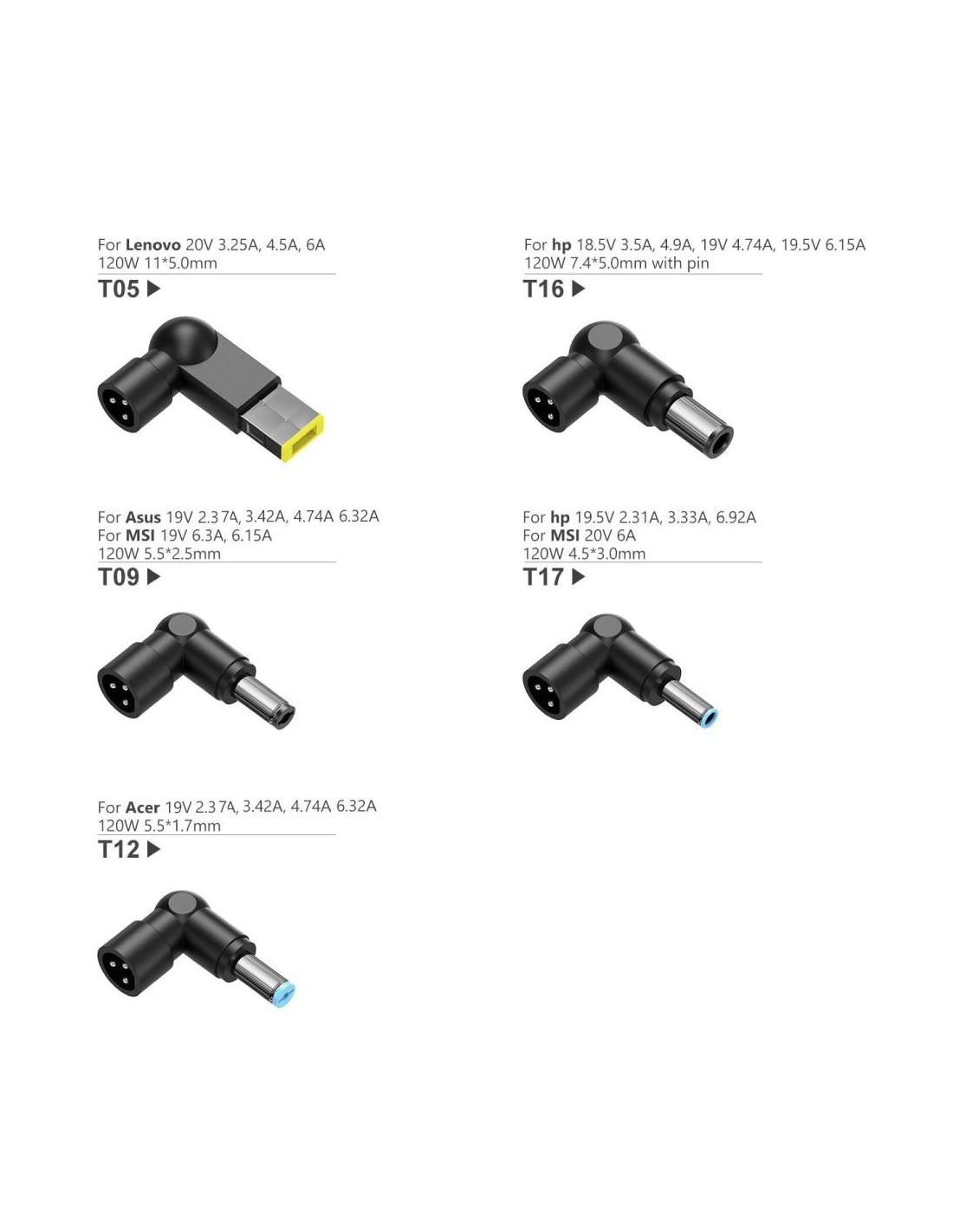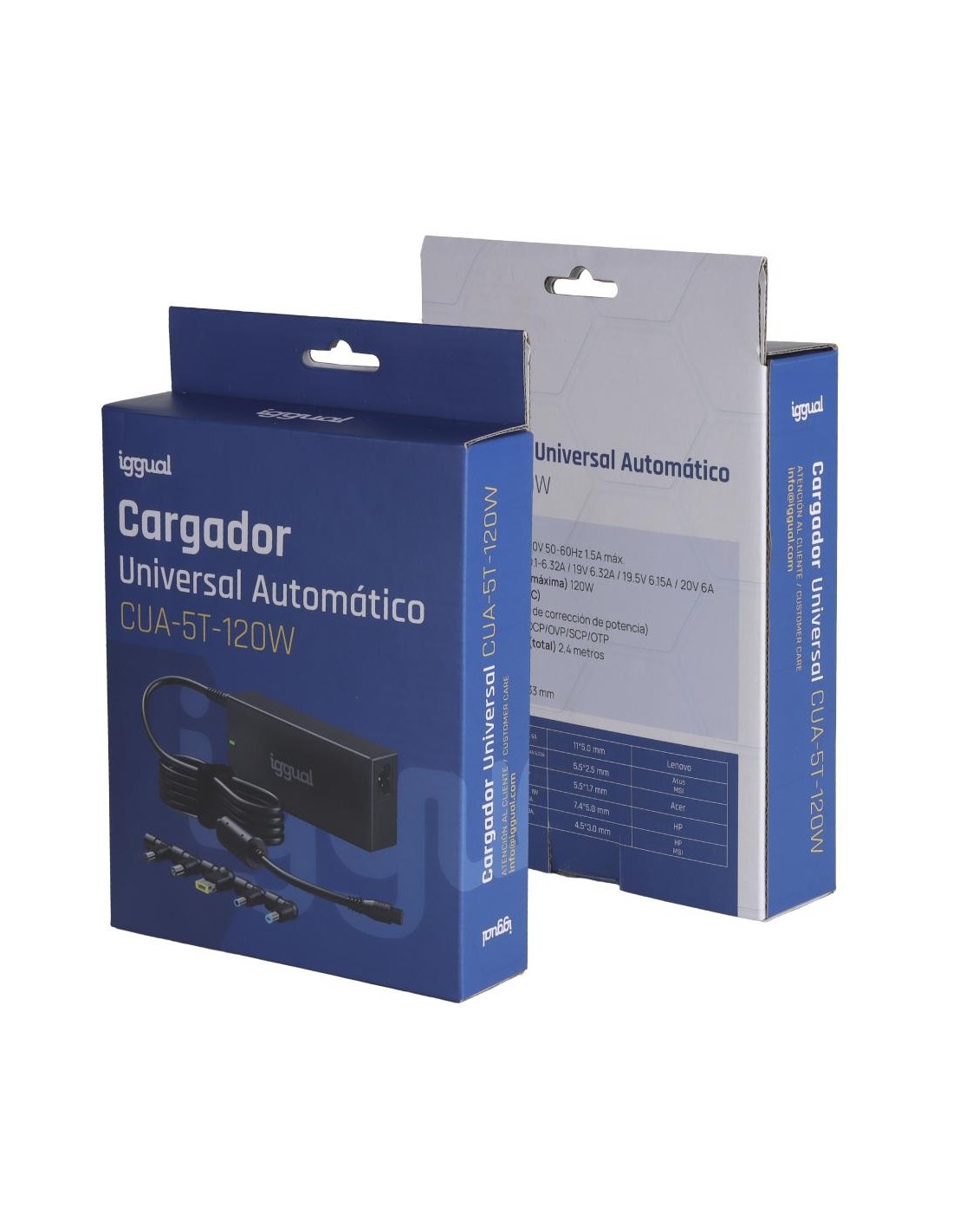 El cargador universal CUA 5T 120 W de iggual se adapta automáticamente al voltaje de tu portátil, eliminando la incertidumbre y los posibles errores de compatibilidad. Compatible con múltiples marcas y modelos, ofrece hasta 120 W de potencia, ideal tanto para ultrabooks como para equipos más exigentes.