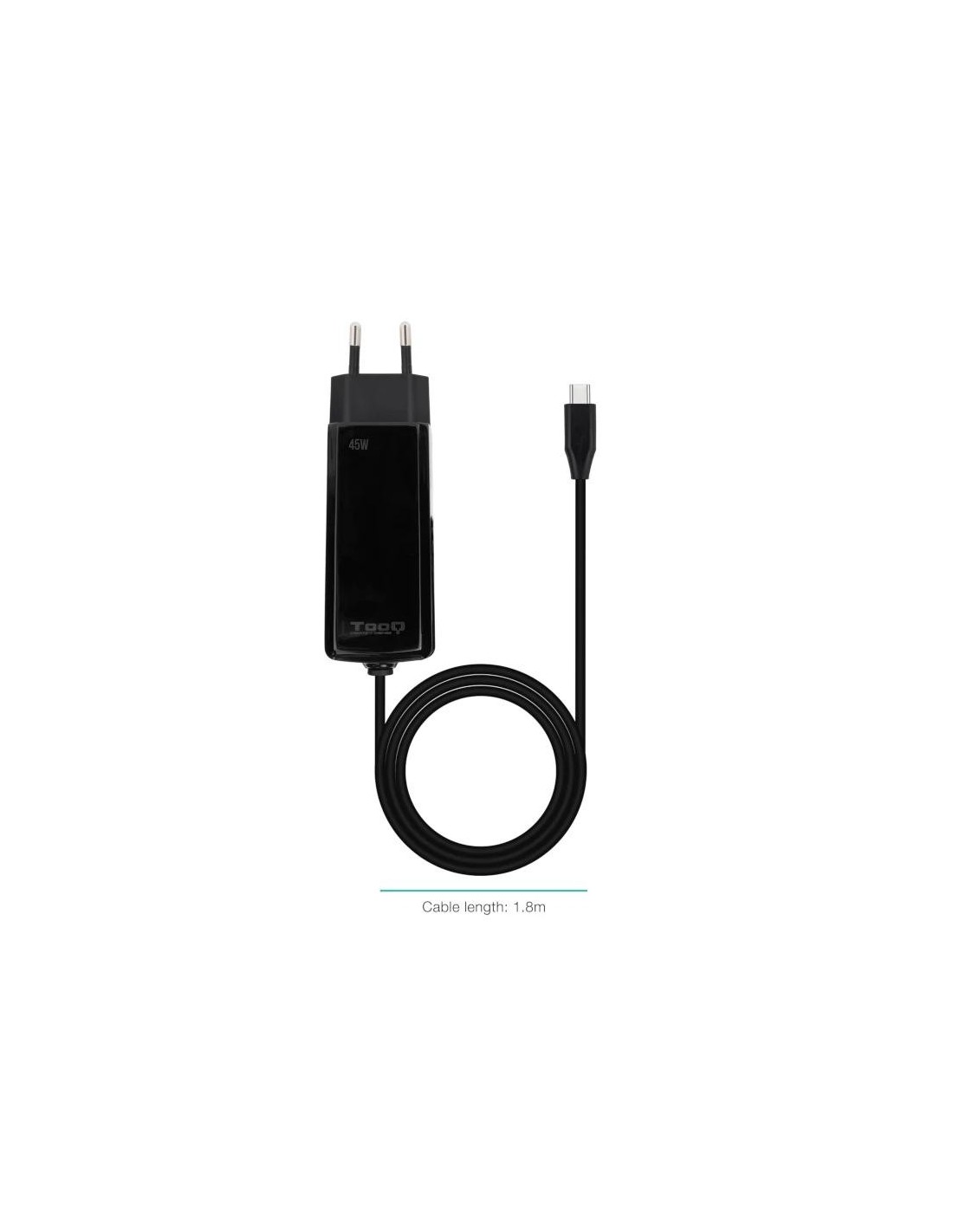 | Características | - Fabricado con la tecnología Gan (Nitruro de Galio), Suministro de corriente eficiente - Entrada: 110-240V 50/60Hz 1.2A max. - Salidas USB-C: DC5V / 3A, DC9V / 3A, DC12V / 3A, DC15V / 3A y DC20V / 2.25A - Potencia: 45W - Válido para todo tipo de dispositivos con conector USB-C de carga - Compatible con MAC - Cable de 1.8 metros - Certificación: CE, FCC y RoHS - Color: Negro Dimensiones y peso - 122 x 35 x 32 mm - Peso neto: 0,124 kg - Peso bruto: 0,174 kg - Medidas del embalaje (blíster): 200 x 150 x 70 mm Contenido - 1 x Cargador de pared |