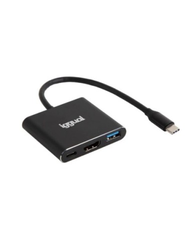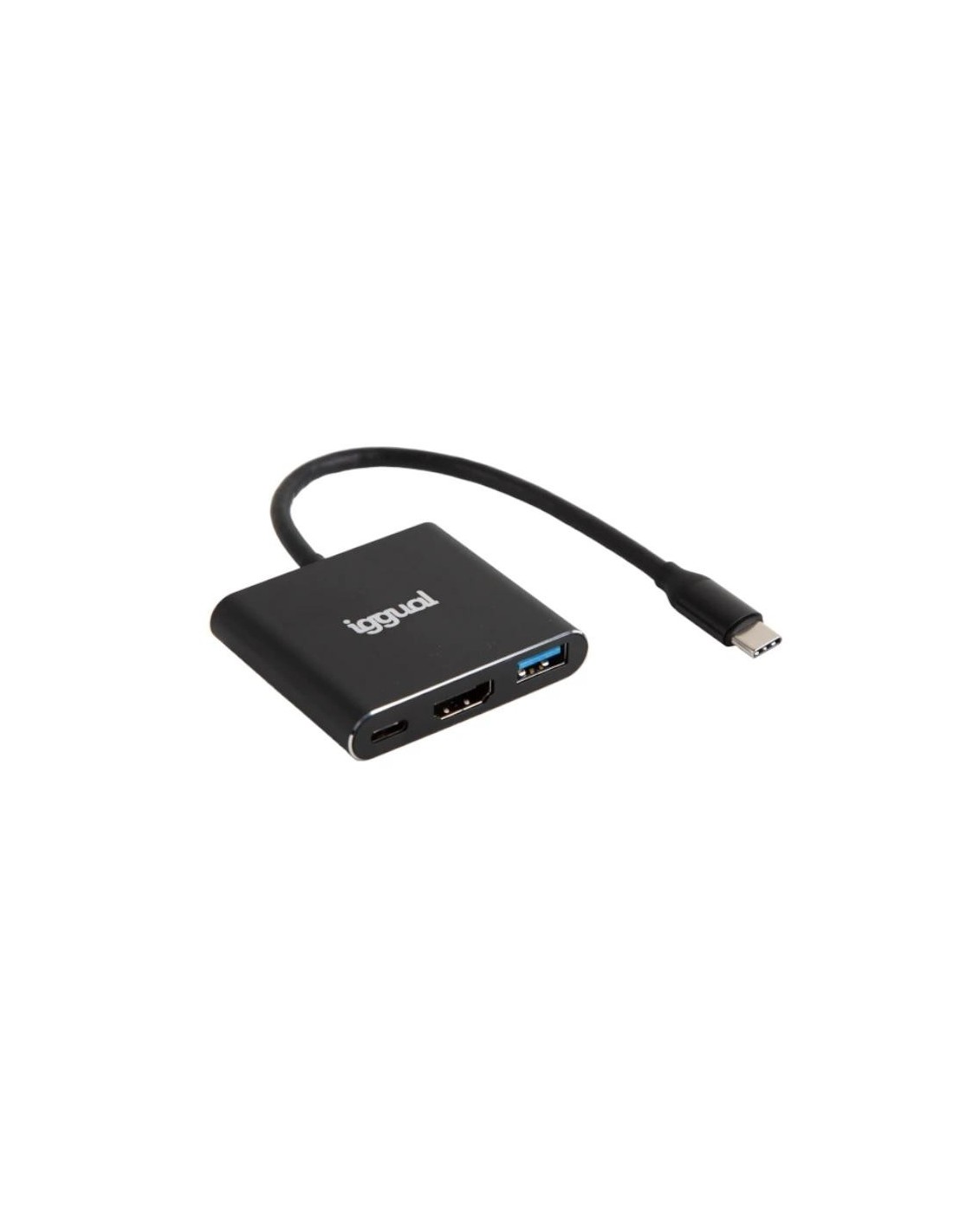 | Características | - Interfaz de conexión: USB tipo C - Puertos de salida: 1 x USB 3.0 1 x HDMI 1 x tipo C (H) PD - Velocidad de transferencia/carga: Hasta 5 Gbit/s (USB) Hasta 100W (PD) -Resolución: Hasta 4K@30Hz (HDMI) - Compatibilidad SO: Windows, MacOS, Linux - Longitud del cable: 18 cm - Dimensiones: 51x58x11 mm - Peso: 43,5 g - Carcasa de aluminio - Color: negro |