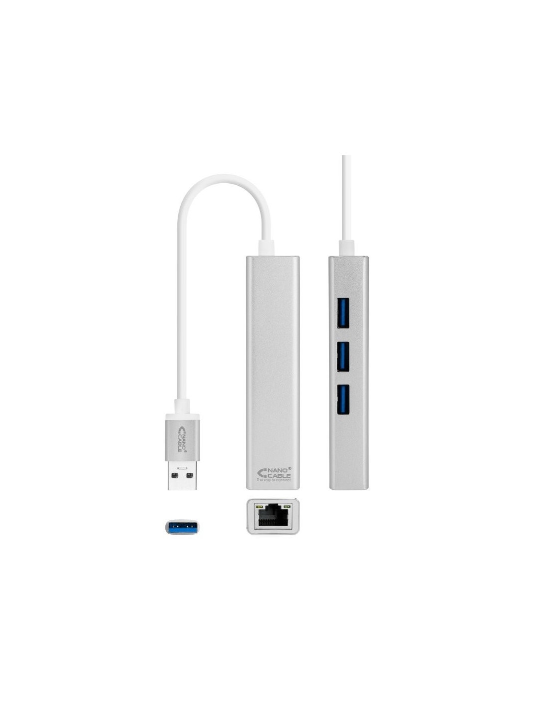 | Caracteristicas | - Conversor USB 3.0 a Ethernet Gigabit con 3 puertos USB 3.0, con conector USB 3.0 macho en un extremo, conector RJ45 hembra y 3 puertos USB 3.0 hembra en el otro. - Permite conectar a una salida USB 3.0 una conexión de red por cable Gigabit, además de disponer de 3 conexiones tipo USB 3.0 - Incluye led de funcionamiento y de actividad - No requiere software ni controladores, una solución totalmente plug and play - Compatible con USB 2.0 - Compatible con Windows (7/8/8.1/10), Mac OS X, Linux OS - Compatible con IEEE 802.3, 802.3u and 802.3ab - Longitud: 15 CM - Color: Plata - Normativas: RoHS - Test de funcionamiento: 100% testado Contenido del paquete - 1 x Conversor USB 3.0 a Ethernet Gigabit + 3 X USB 3.0, plata, 15 cm |