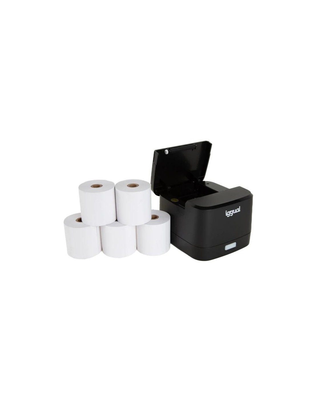 iggualEl pack perfecto para tu TPV: impresora térmica TP EASY 58 + 5 rollos de papel térmico BPA free