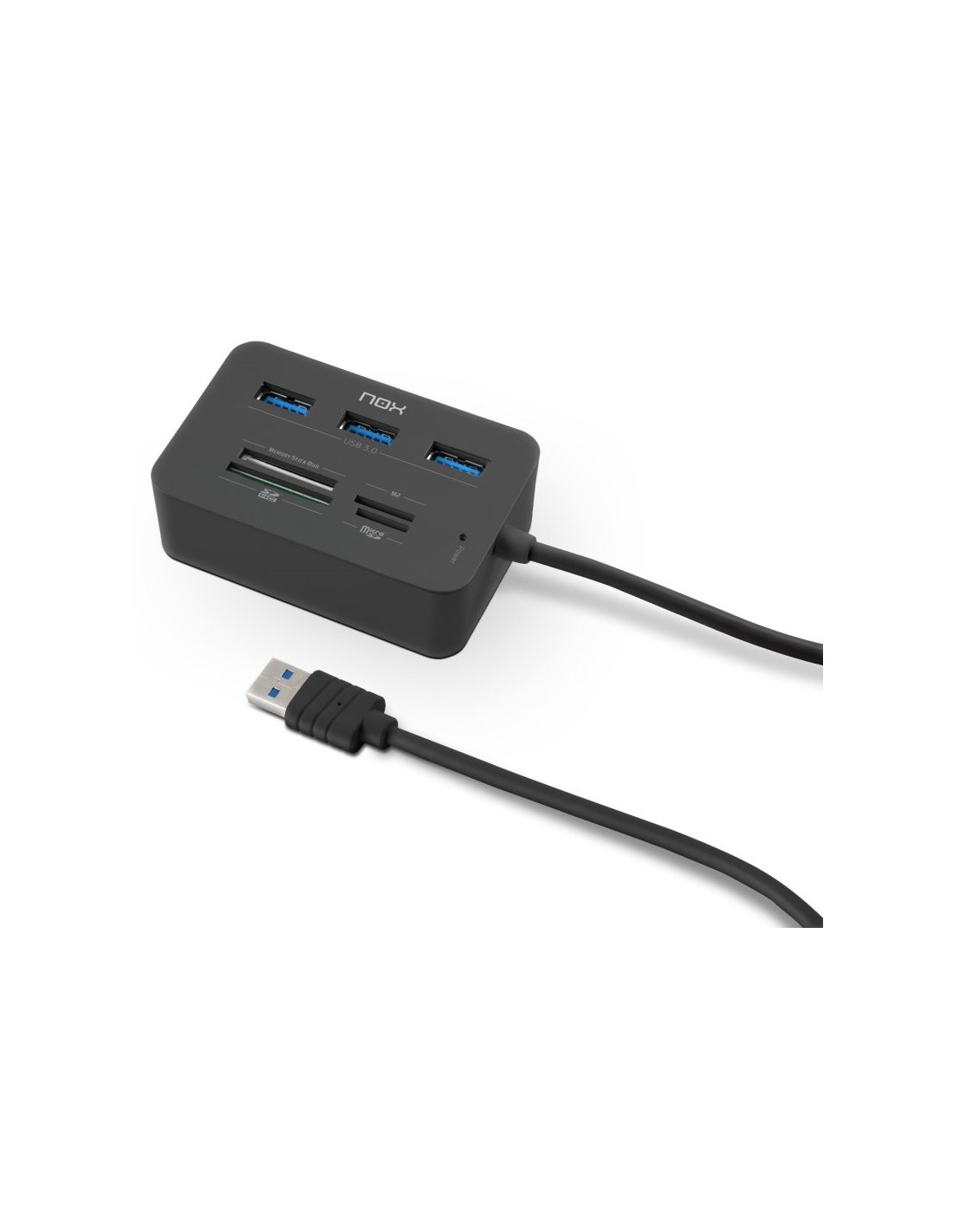 Nox Lite Reader One es un multilector de tarjetas, compatible con los principales formatos del mercado, que también posee tres puertos USB 3.0 de alta velocidad para conectar todo tipo de dispositivos. Se trata de la solución perfecta para transmitir archivos a una alta velocidad de una manera estable y segura, ampliando así las conexiones del ordenador o portátil.