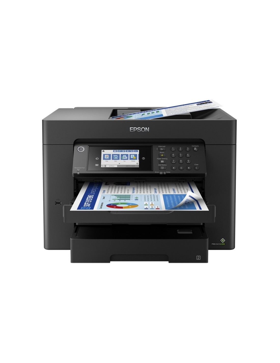 | Tecnología | - Método de impresión: Cabezal de impresión PrecisionCore™ - Configuración inyectores: 800 Inyectores negro, 256 Inyectores por color - Tamaño máximo gota: 3,8 pl, Con tecnología de gotas de tinta de tamaño variable - Tecnología de tinta: Epson DURABrite™ Ultra - Categoría: Home Office, Grupo de trabajo - Multifunción: Impresión, Escanear, Copia, Fax |