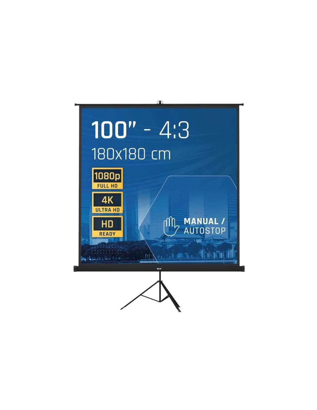 | Otras Características | - Auto-Stop: Ajustable a cualquier altura - Material exterior: Acero - Solo se puede colocar con su trípode - Trasera negra opaca - Bordes negros de 3 cm a la izquierda y derecha - Fácil montaje - Alta Calidad - Ideal para cine en casa y salas de conferencias - Ideal para cualquier tipo de proyector, SVGA, XGA, 3D, HD, Full HD y 4K |