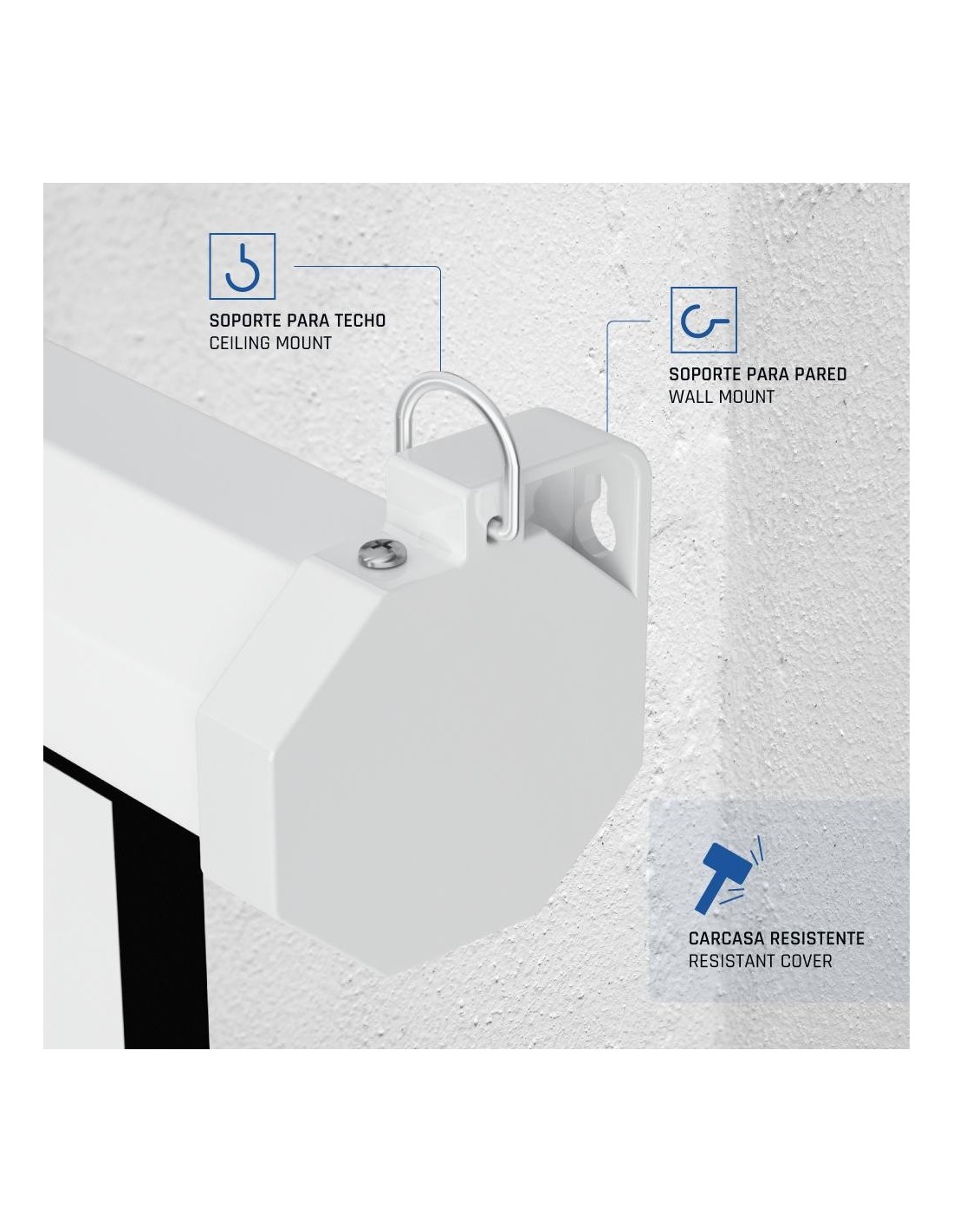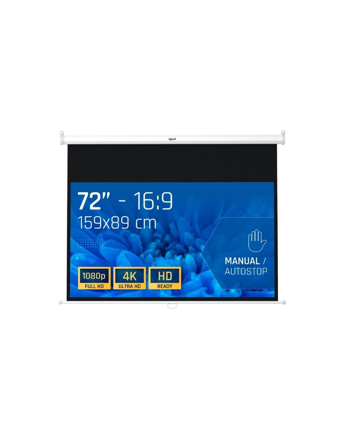 | Características | - Formato 16:9 - Área visible de 92" (159 x 89 cm) - Factor de ganancia: 1.0 - Auto-Stop: ajustable a cualquier altura - Material cajetín: acero - Carcasa blanca y a prueba de polvo - Se puede instalar tanto en techo como en pared - Tela compuesta de 4 capas - Trasera negra opaca - Bordes negros laterales de 3 cm - Fácil montaje - Alta calidad y durabilidad - Ideal para cine en casa y salas de conferencias - Ideal para cualquier tipo de proyector, SVGA, XGA, 3D, HD, Full HD y 4K |