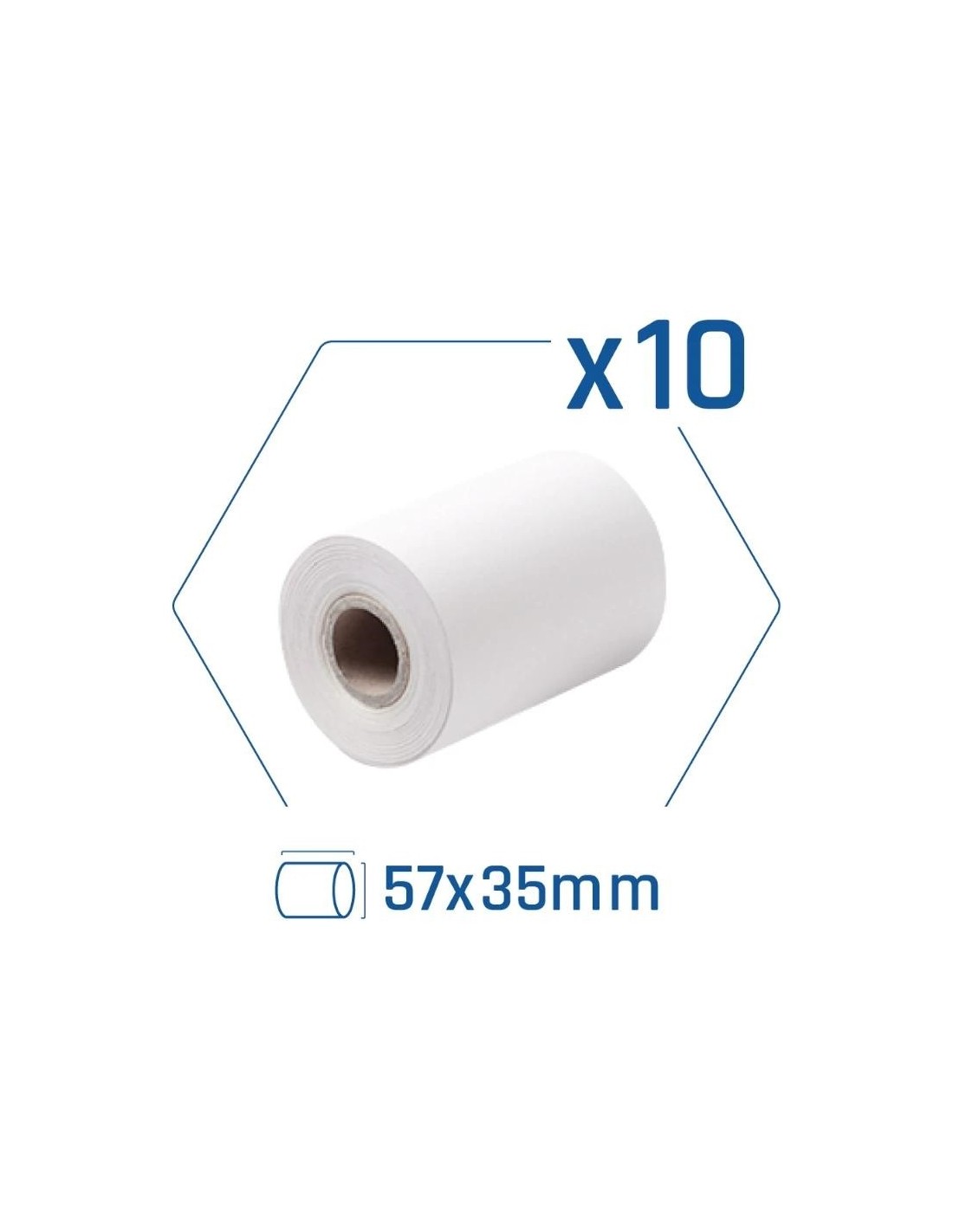 | Características | - Pack de 10 unidades - Rollo de papel térmico 57 x 35 x 13 mm - Válido para todos los datáfonos - Ancho papel: 57 mm - Diámetro exterior rollo: 35 mm - Diámetro agujero interior: 13 mm - Gramaje: 65 g / m2 - No contiene BPA (Bisfenol A) - Certificado RoHS |
