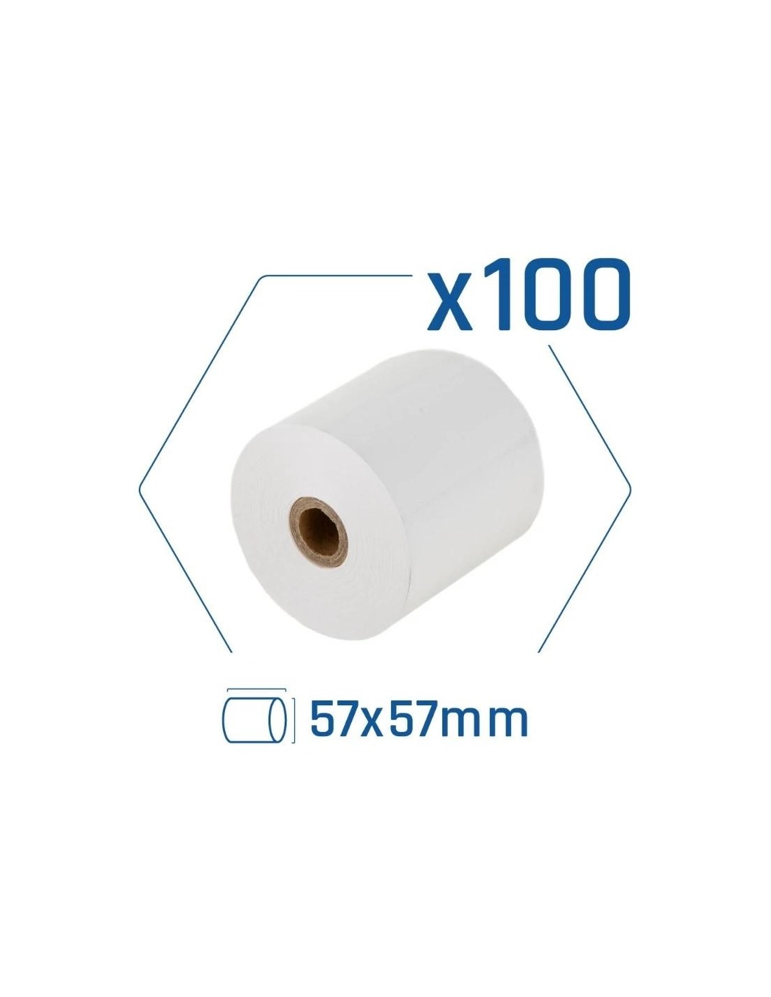 | Características | - Pack de 100 unidades - Rollo de papel térmico 57 x 57 x 13 mm - Ancho papel: 57 mm - Diámetro exterior rollo: 57 mm - Diámetro agujero interior: 13 mm - Gramaje: 65 g / m2 - No contiene BPA (Bisfenol A) - Certificado RoHS |