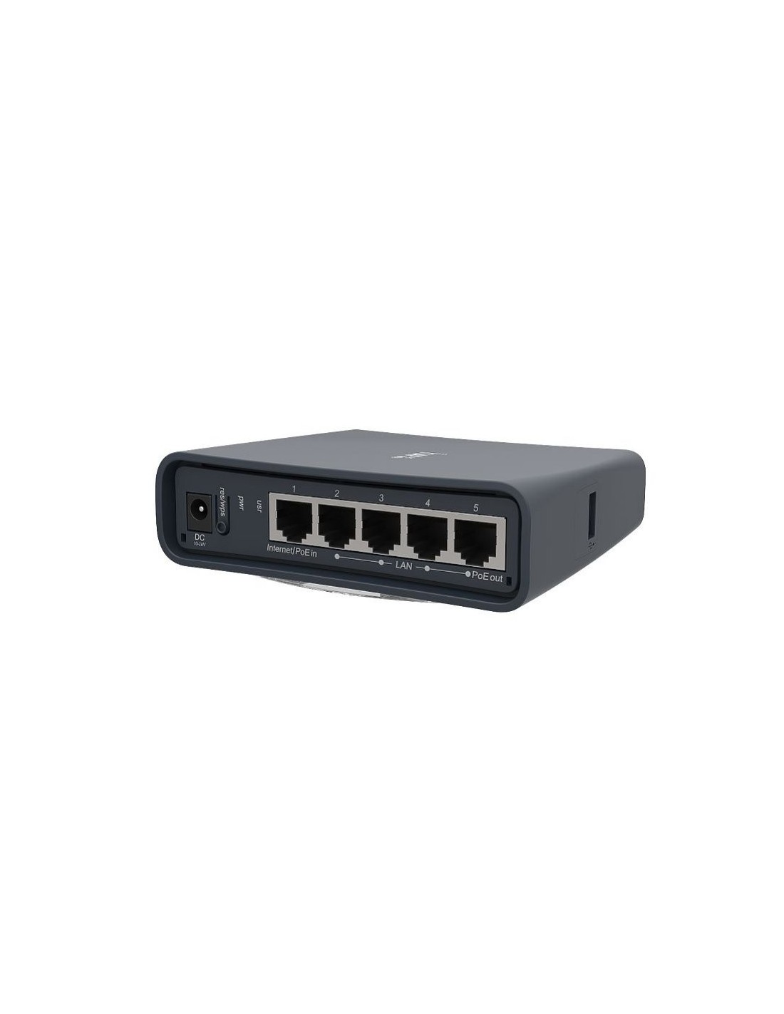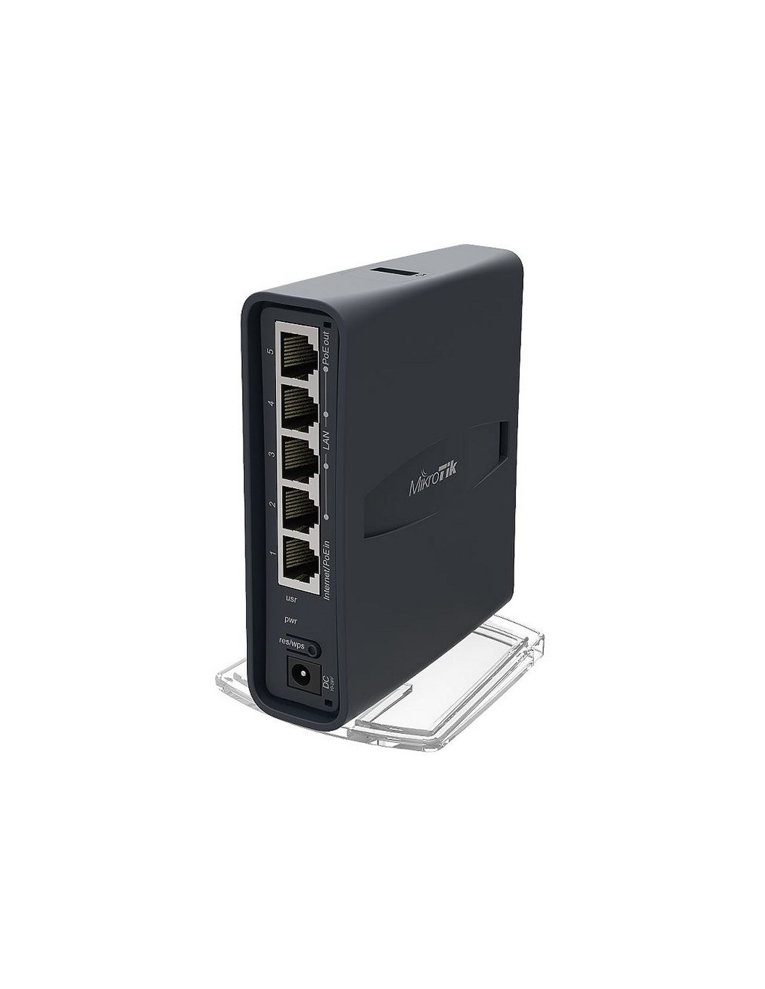 La unidad está equipada con una CPU de 650MHz, 64MB de RAM, cinco puertos Ethernet de 10 / 100Mbps (salida PoE en el puerto # 5), 802.11b/g/n de doble cadena inalámbrica de 2,4 GHz, una sola cadena de 802.11ac 5GHz inalámbrica, puerto USB para 3G / 4G y una licencia RouterOS L4.