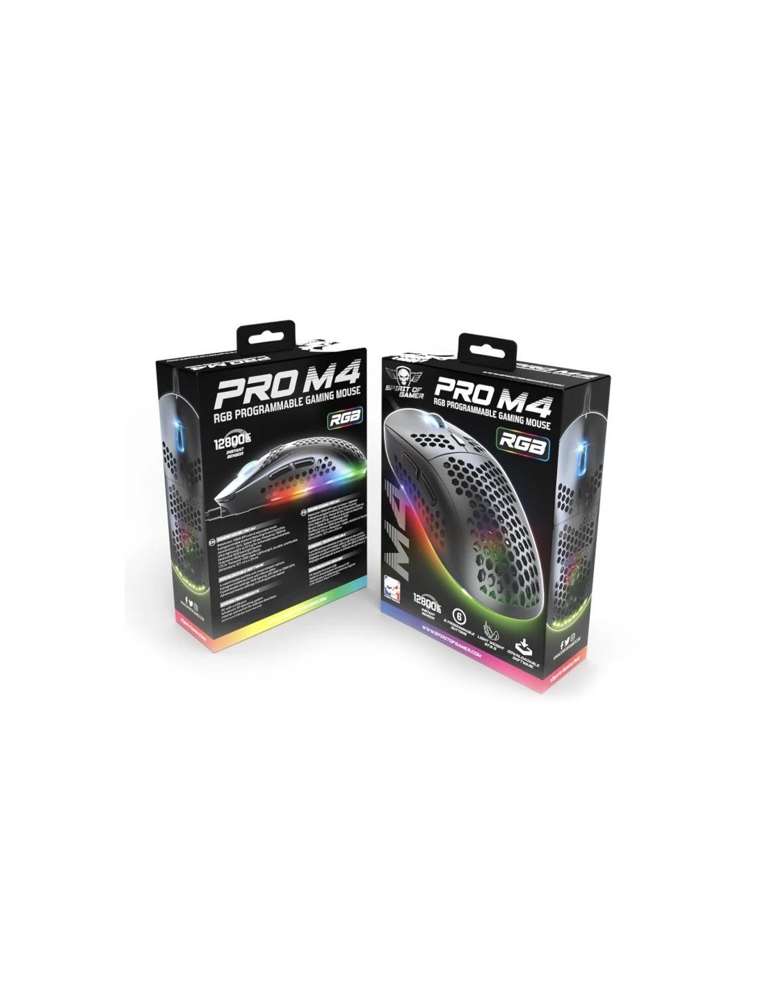 | Características | - Resolución: 12800 ppp - Aceleración: 20 gramos - Captador: Instantáneo - Óptico - Tasa de transferencia: 1000Hz - Botones: 6 programables - Ergonomía: Diestro - Software: Disponible en descarga - Compatibilidad: Windows XP y versiones más recientes - Retroiluminación: 13 efectos luminosos RGB dinámicos - Velocidad: 60 fps - Conexión: Con cable - Longitud del cable: 1,75 m Paracord Dimensiones y peso - 12,7 x 6,4 x 3,9 cm - 67 g Contenido - Guía de instalación rápida - Ratón PRO-M4 RGB |