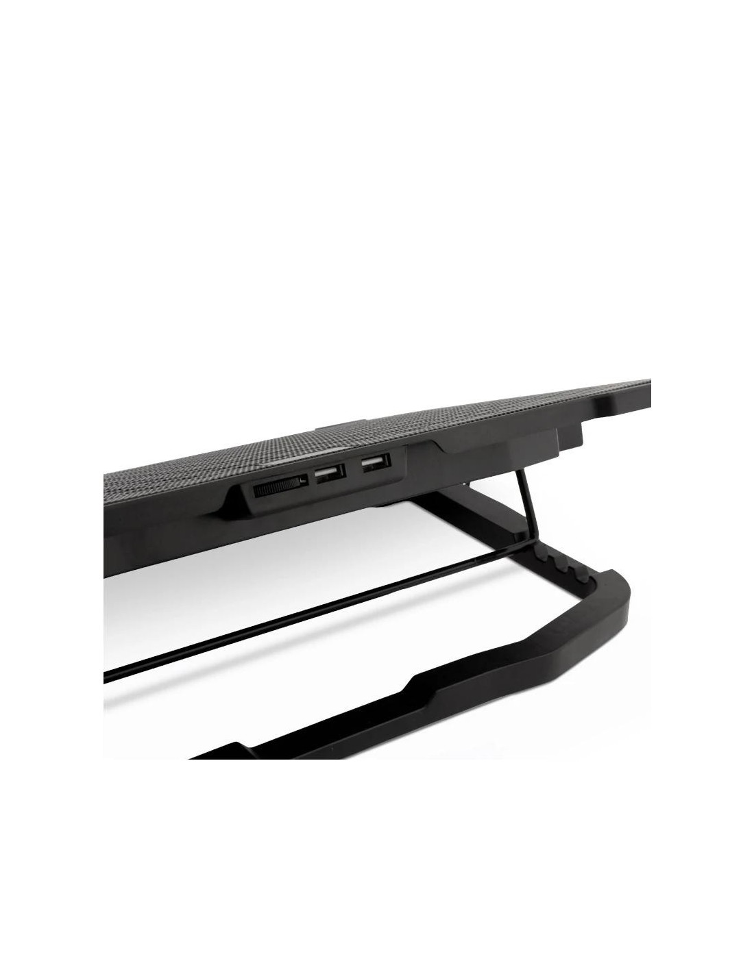 | Características | - Compatibilidad: Para portátiles de hasta 17,3” - Refrigeración: 5 ventiladores con regulador de velocidad - Conexiones: doble puerto USB para no perder el utilizado por el portátil para alimentar el atril - Iluminación: LED color azul - Material: plástico y rejilla de acero - Posiciones: atril ajustable con 4 posiciones - Alimentación: DC 5V/1A a través de USB con cable suministrado - Longitud del cable: 60 cm - Dimensiones: 410 x 295 x 25 mm (cerrado) - Peso: 830 gr |