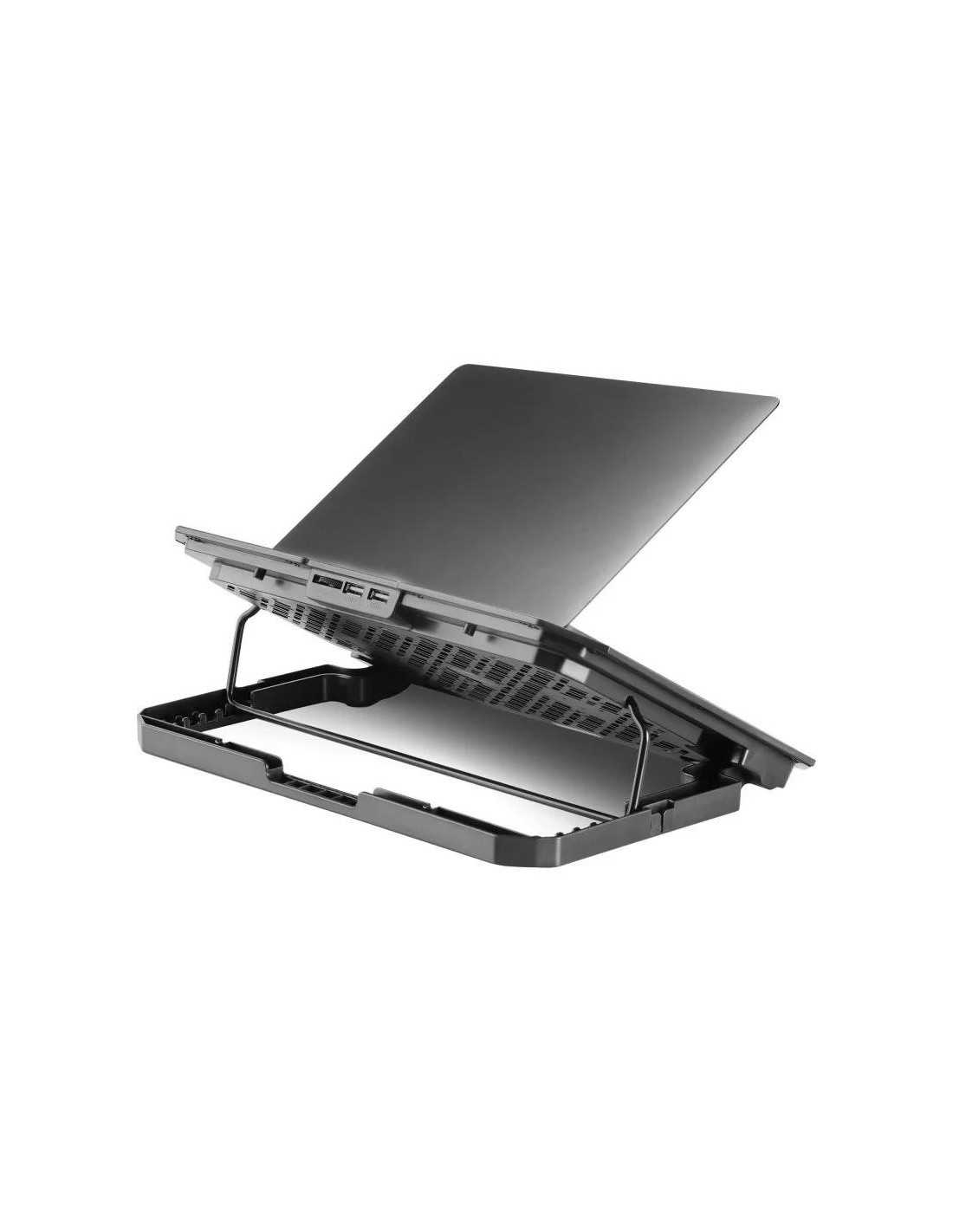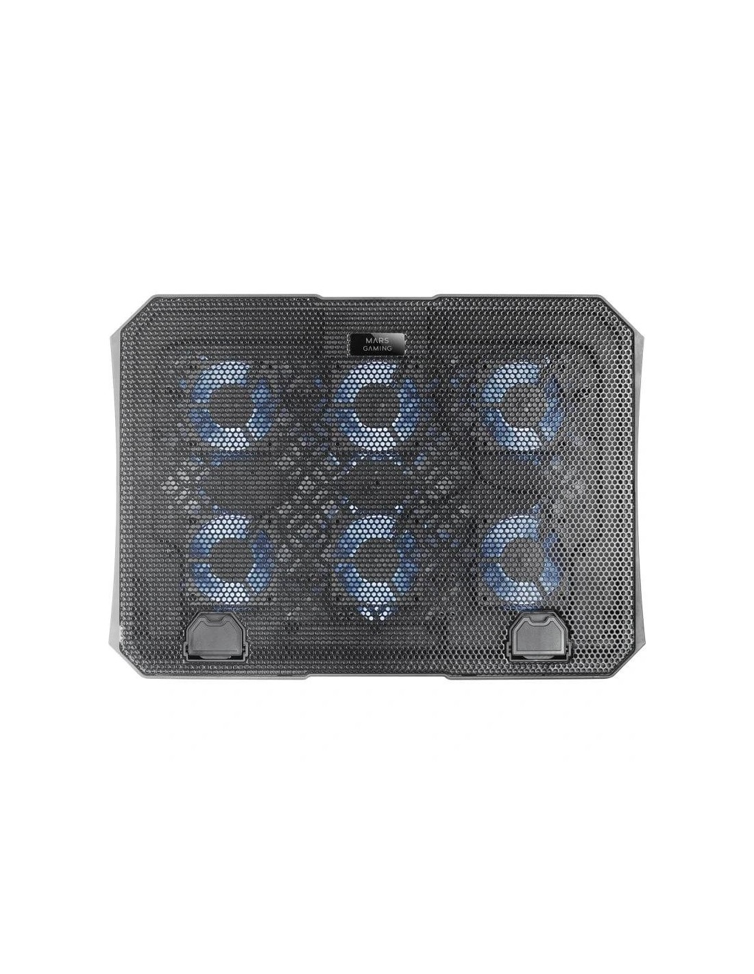 | Características | - Tamaño portátiles: Hasta 16" - Iluminación: LED azul (6x ventiladores) - Materiales: Estructura Acero, ABS, Rejilla Aluminio - Función stand: Altura regulable en 6 posiciones - Extras: Smartphone holder - Puertos USB: 2 - Botón ON/OFF - Conexión: USB 2.0 - Nº de ventiladores: 6 - Voltaje: DC 5V - Corriente: 0.8A Dimensiones y peso - 330 x 251 x 30 mm - 731g |