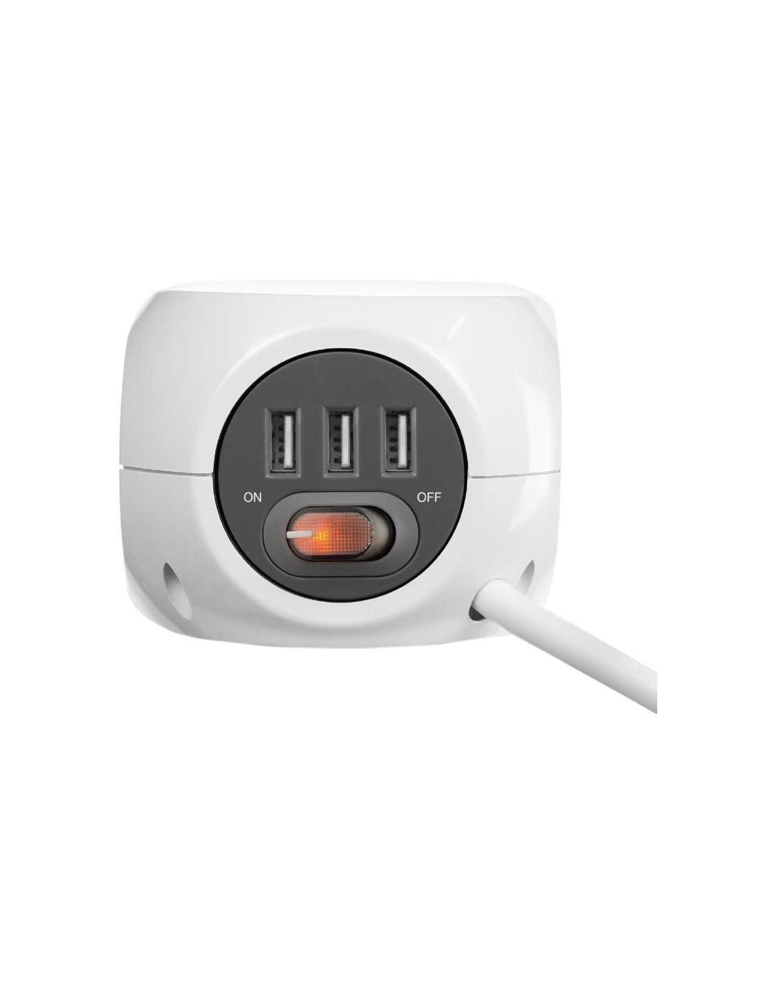 La toma de corriente cúbica EW3939 dispone de 3 salidas de alimentación para conectar 3 dispositivos. Los tres puertos USB son adecuados para cargar teléfonos inteligentes y tablets con una carga máxima de 2,4A a la vez.