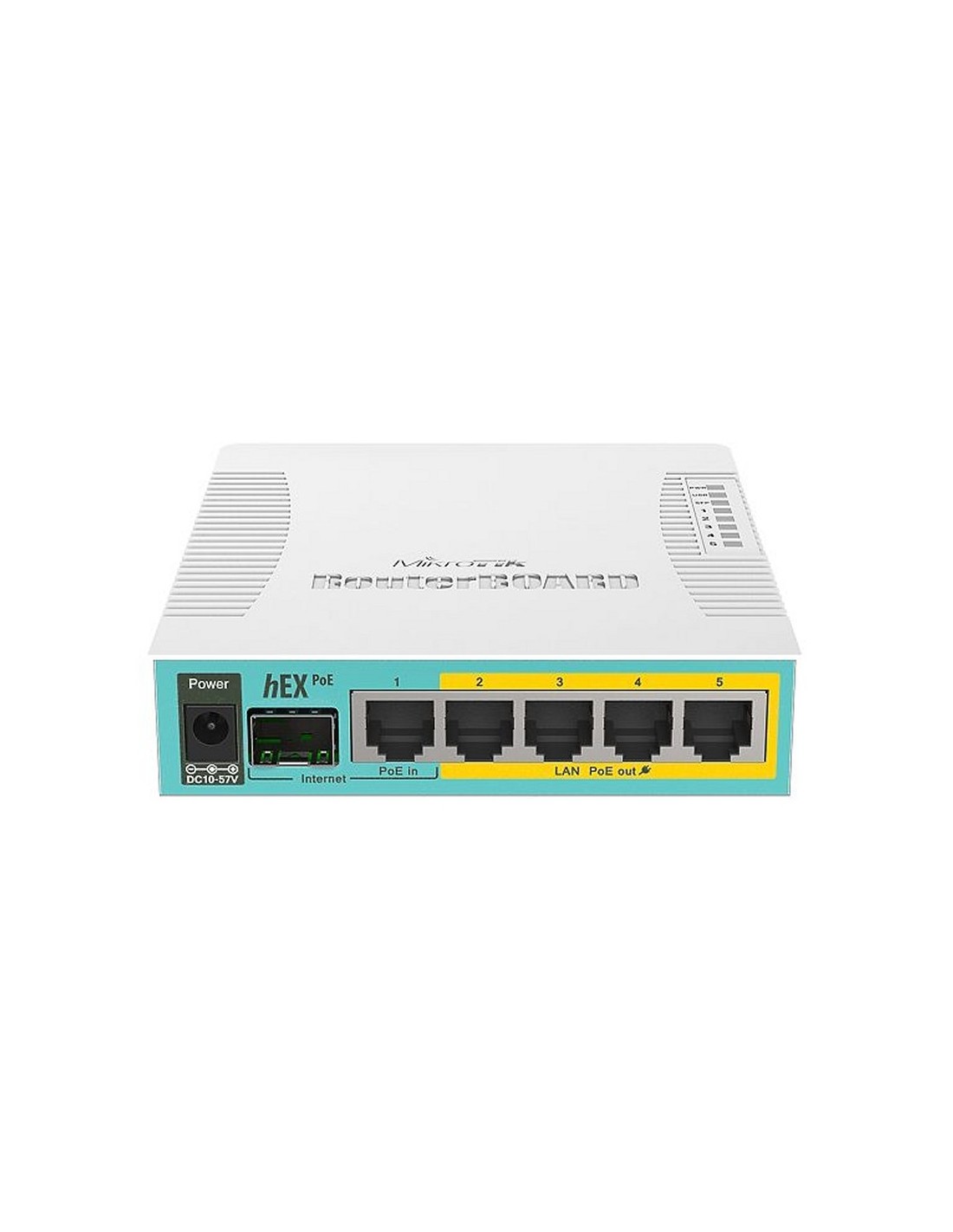 | Caracteristicas | - Código de producto: hEX PoE - Arquitectura: MIPSBE - CPU: QCA9557 - Núcleo de CPU: 1 - Frecuencia nominal de la CPU: 800 MHz - Nivel de licencia: 4 - Tamaño de la RAM: 128 MB - Tamaño de almacenamiento: 16 MB - Tipo de almacenamiento: FLASH - Temperatura ambiente probada: -40 + 70 C Alimentación - Consumo máximo de energía: 9W - PoE en: PoE pasivo - PoE fuera: 802.3af / at - PoE en entrada Voltaje: 12-57 V - Número de entradas de CC: 2 (toma de CC, PoE-IN) - Voltaje de entrada del conector de CC: 12-57 V |