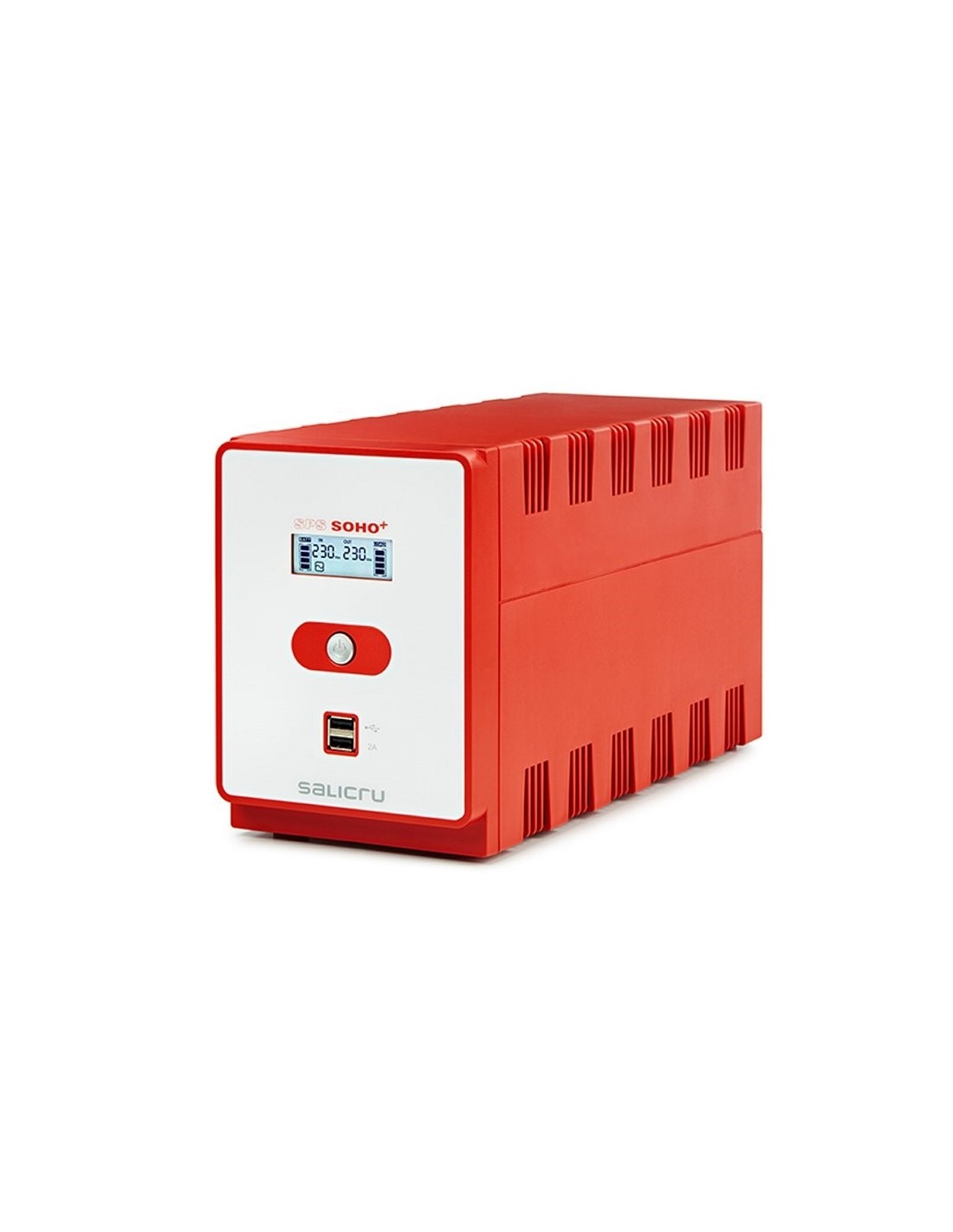| Indicaciones | - LCD: Sí, multifunción - Valores mostrados: Tensión entrada y salida / Frecuencia entrada y salida / Tensión batería / % de carga - Niveles: Carga conectada / Sobrecarga / Batería / Batería baja - Modos de funcionamiento: Normal / Estabilización (AVR) / Batería / Fallo |