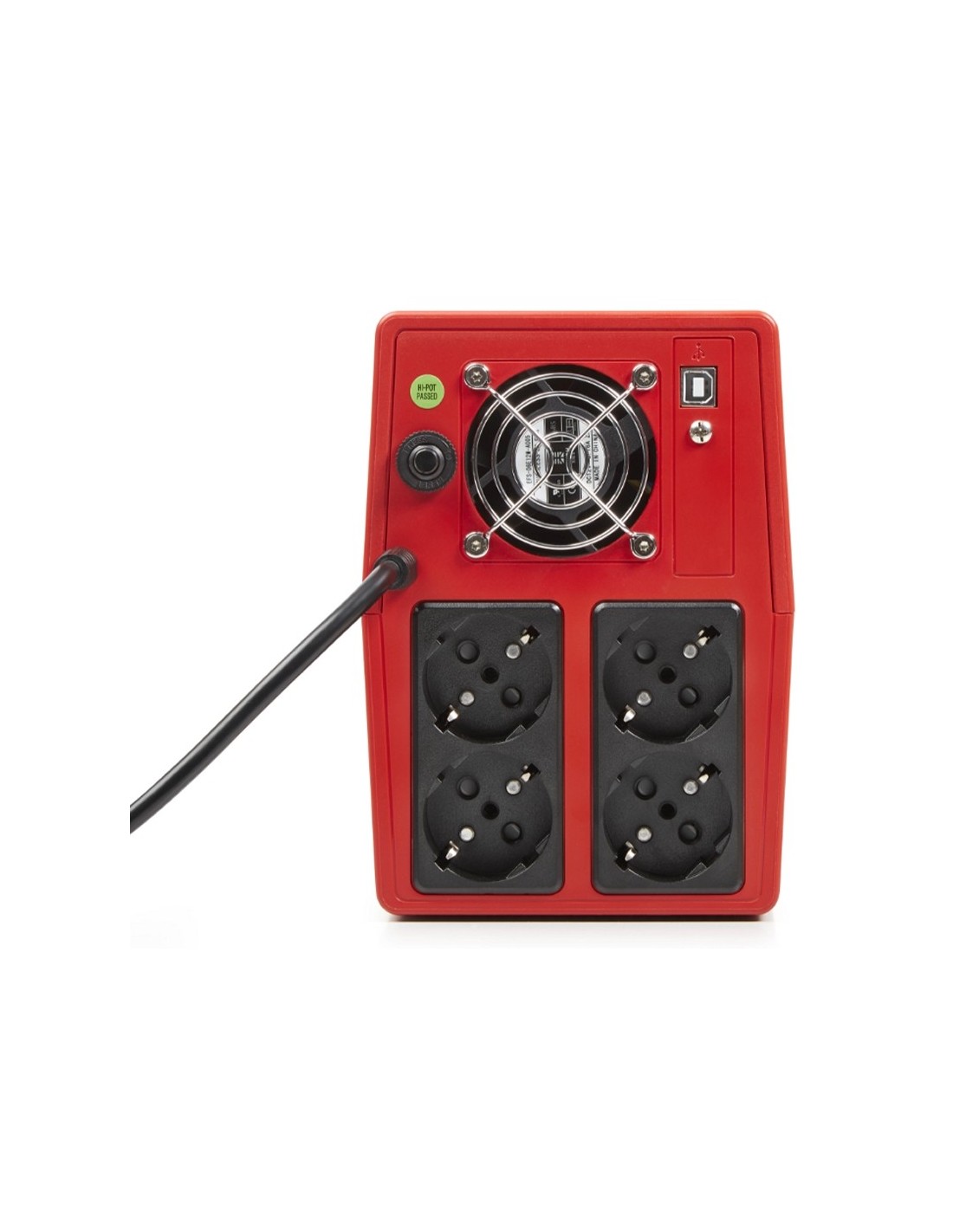 | Salida | - Tensión: 220 V / 230 V / 240 V AC - Precisión de tensión: ±10% - Frecuencia: 50 / 60 Hz ± 1 Hz - Forma de onda: Pseudosenoidal - Formatos de toma diponibles: Schuko (DIN), francés (FR), inglés (UK) e IEC - Tiempo de transferencia: 2 / 6 ms |