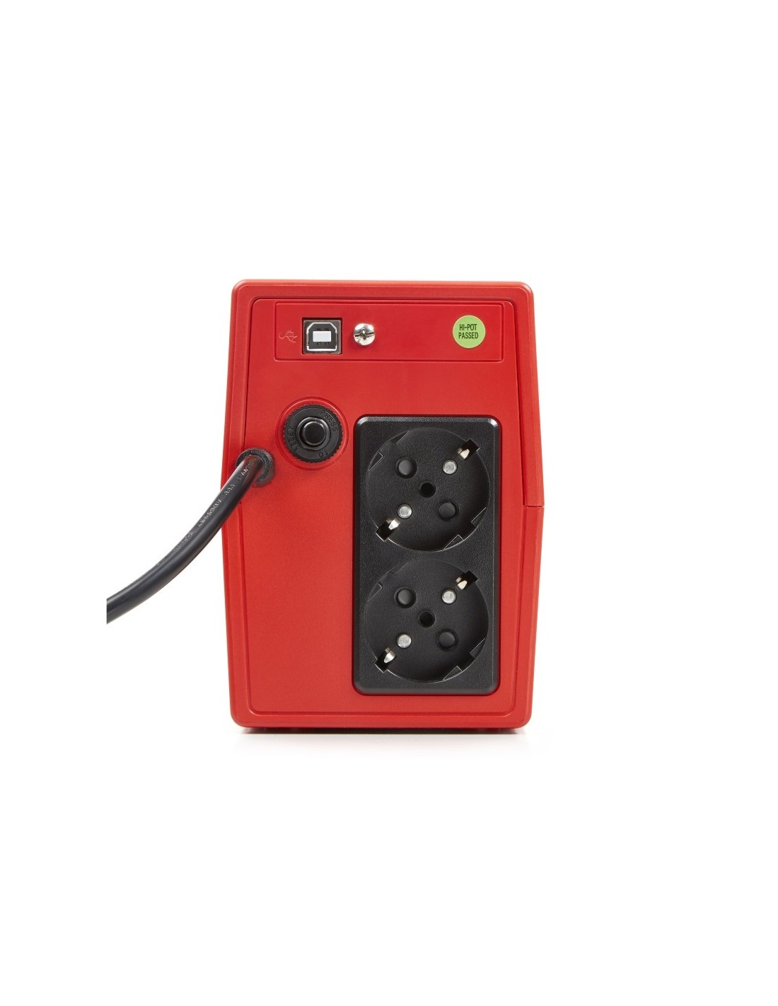 | Otras características | - Normativa CE - Regulación automática de tensión "AVR" - Protección térmica de entrada - Arranque en frio. Autotest. Rearranque automático - Incluye software de gestión "ViewPower" - Compatible Windows, Mac, Linux, Unix - Alarmas, indicadores LED - Dimensiones/Peso: 287x100x142 mm / 4,25 Kg. - Color rojo |