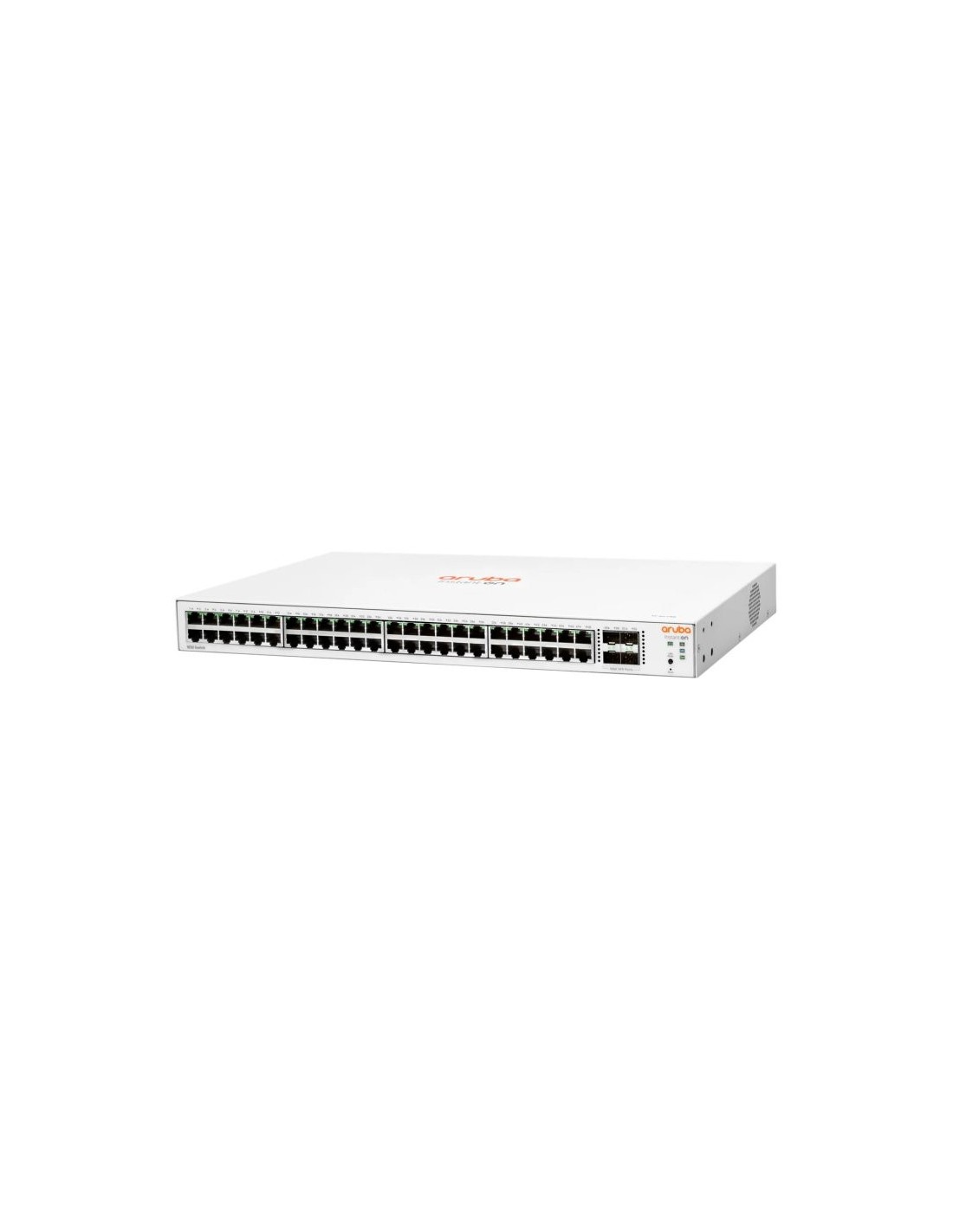 | Características | Puertos y ranuras - 48 RJ-45 autosensing 10/100/1000 ports - (IEEE 802.3 Type 10BASE-T, IEEE 802.3u Type 100BASE-TX, IEEE 802.3ab Type 1000BASE-T) - Duplex: 10BASE-T/100BASETX: (medio o completo) - 1000BASE-T: (solo completo) - 4 SFP 1GbE ports Características Físicas - Dimensiones: 253.0(d) x 443.0(w) x 43.9(h) mm - Peso: 7.80 lb (3.54 kg) Procesador y memoria - ARM Cortex-A9 @ 800MHz, 512 MB SDRAM, 256 MB flash; packet buffer: 1.5MB Desempeño - Latencia de 100 Mb: < 5.2 uSec - Latencia de 1000 Mb: < 2.8 uSec - Latencia de 10000 Mb: n/a - Rendimiento (Mpps): 77.37 Mpps - Capacidad: 104 Gbps - Tamaño de la tabla de direcciones MAC (cant. de entradas): 16,000 entries - Confiabilidad MTBF (años): 114.4 Administración de dispositivos - Aruba Instant On en la nube; navegador web y administrador SNMP Características eléctricas - Frecuencia: 50/60 Hz - Voltaje de CA: 100 a 127 / 200 a 240 VCA - Corriente: 0.9A/0.6A - Potencia nominal máxima: 100-127V: 40.2W / 200-220V: 40W - Consumo de energía inactivo: 100-127V: 17.7W / 200-220V: 17.7W - Suministro de energía: Suministro de energía interno Instalación - Se instala en un bastidor de telecomunicaciones EIA estándar de 19 pulgadas o gabinete equivalente. - Incluye kit de bastidor de 2 postes. - Se puede instalar en un escritorio. - Se puede instalar en un bastidor. - Se puede instalar en una pared con los puertos hacia arriba o abajo. - Se puede instalar debajo de un escritorio con los soportes provistos. Transceptores - Transceptor Aruba Instant On 1G SFP LC SX 500m OM2MMF (R9D16A) - Transceptor Aruba 1G SFP LC LX 10km SMF (J4859D) - Transceptor Aruba 1G SFP RJ45 T 100m Cat5e (J8177D) |